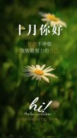 9、九月再见,十月你好,轻语岁月,淡看流年,愿你生活明朗,目光所及皆温柔。走过的是岁月,留下的是故事,随风的是记忆,期盼的是希望,九月再见,十月你好! 10、道一声九月再见,挥手告别旧时光,说一声十月你好,满载希望新未来。愿你生活不拥挤,愿你笑容不必刻意,愿你期待的会到来。九月再见,十月你好! |