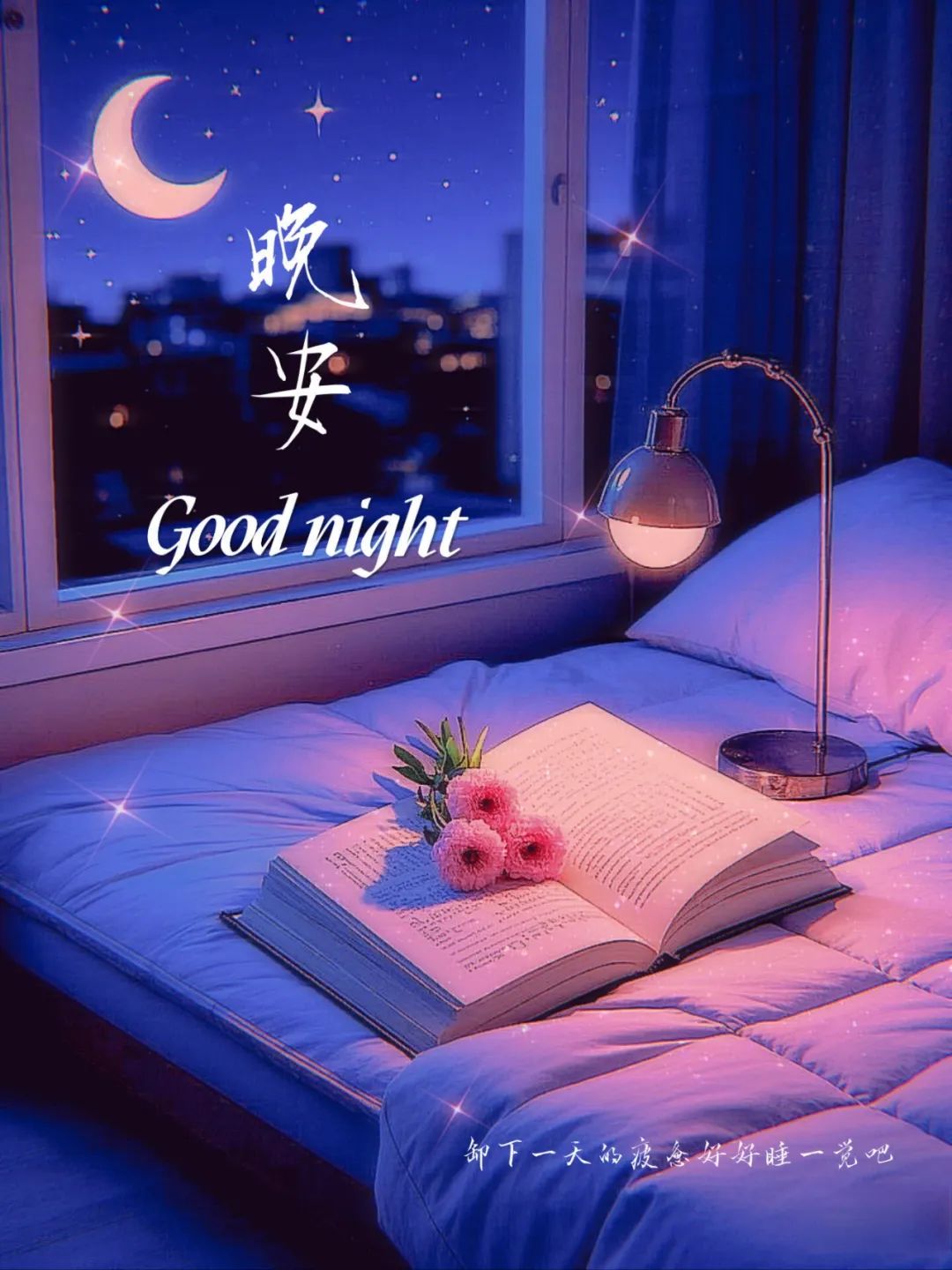 2025年4月10日正能量晚安睡前心语文案图片,该吃就吃,睡时就睡,祝晚安安眠,眠好好梦。