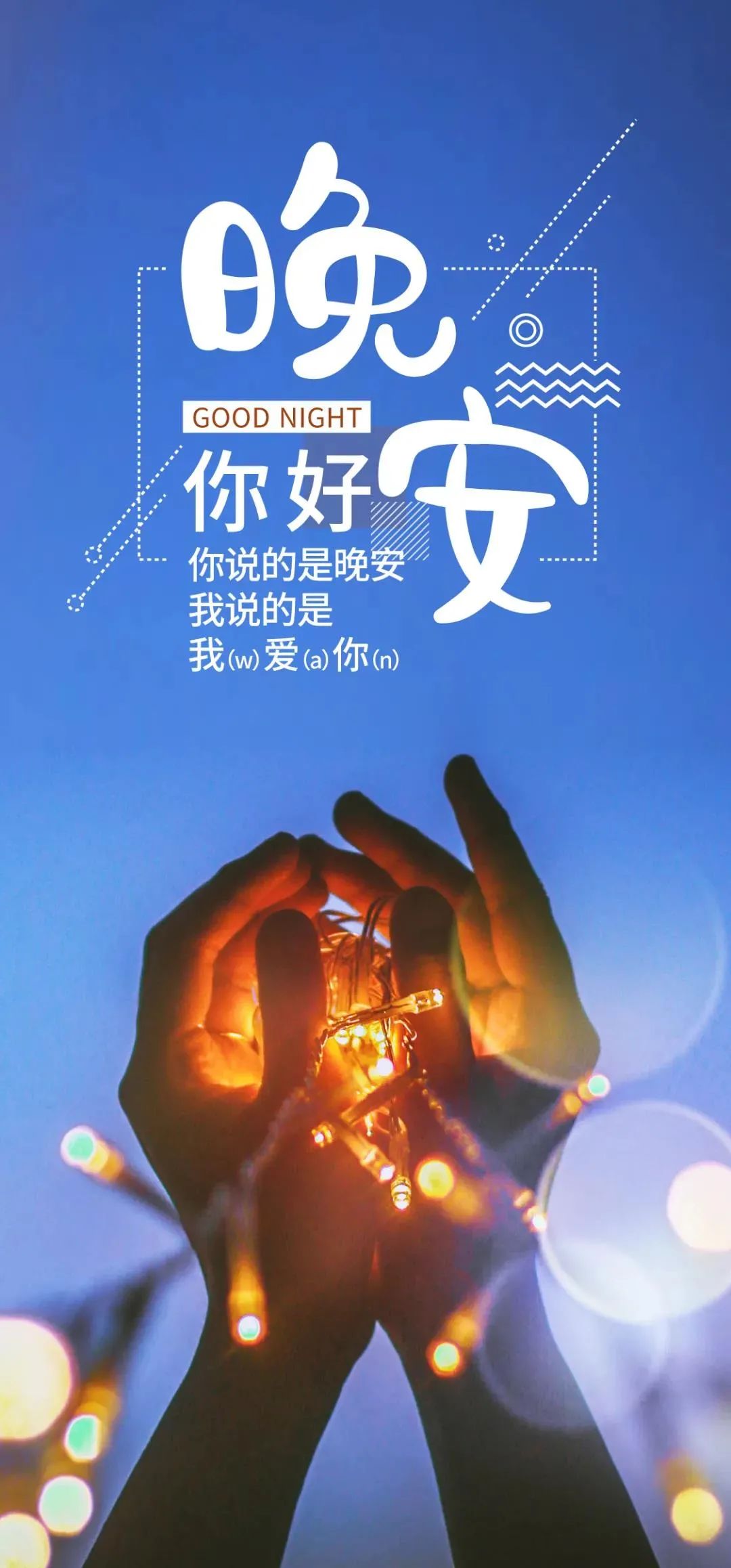 晚上好,愿你的夜晚不再孤单,有温暖的灯光陪伴,有美好的故事入梦,明天醒来又是精神满满的一天。 Good evening, may your night no longer be lonely, accompanied by warm lights, and filled with beautiful stories. Tomorrow, when you wake up, it will be another day full of energy. 早点睡吧,你想要的,梦里都有。晚安! Go to bed early, everything you want is in your dreams. good night!