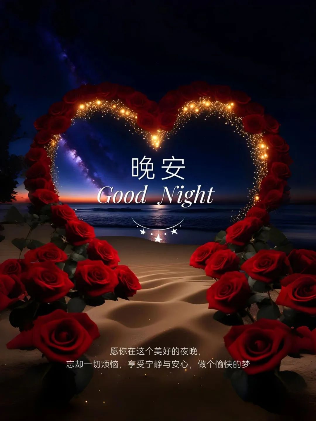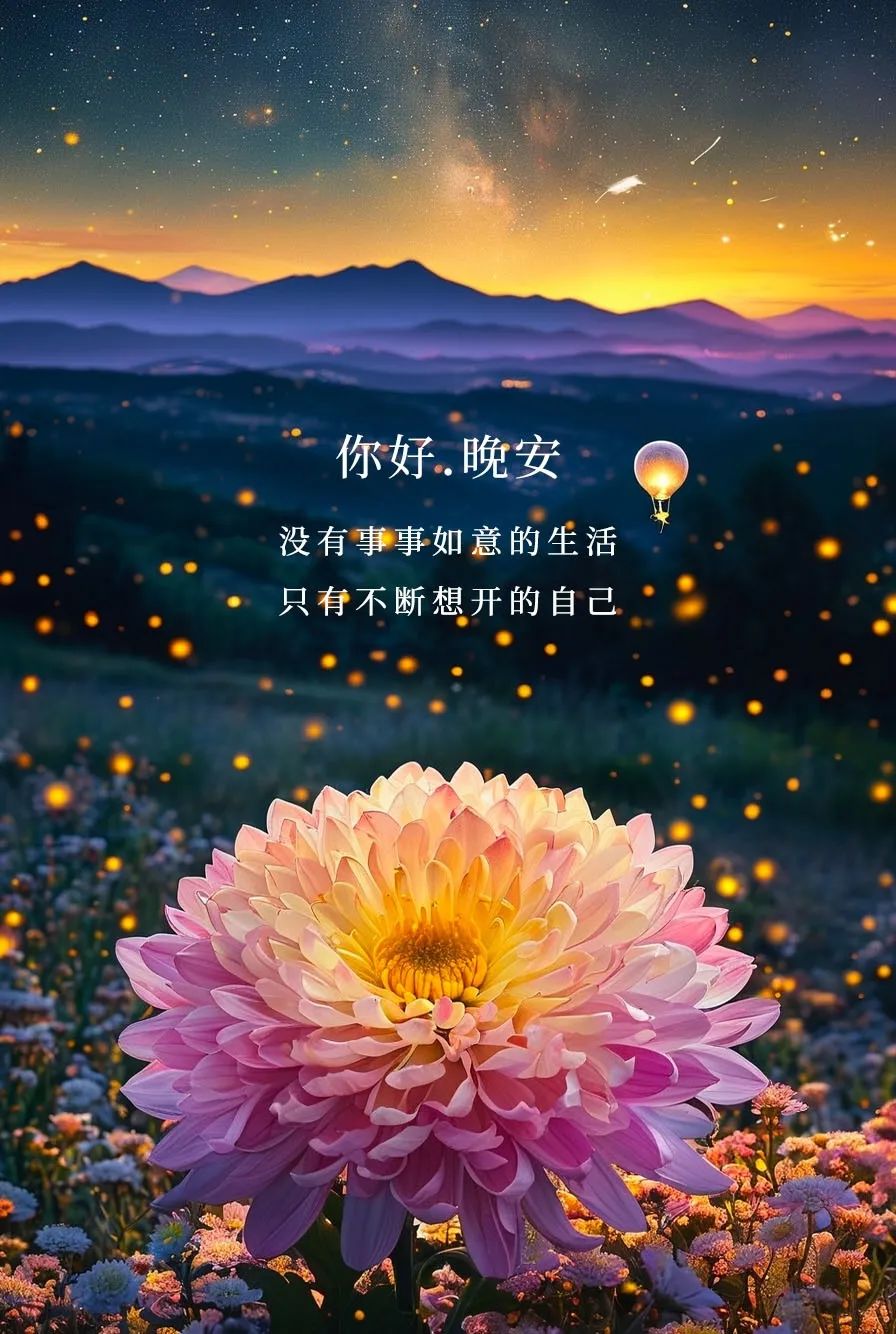 没有哪一种生活、哪一种年龄不会遭遇辛苦,我们的奋斗和努力,不是为了挣脱,而是为了可以拥有更多选择的资格。努力,赋予了我们改变的可能,又在每一次的选择过后,让我们变得更加优秀。晚安! There is no life or age that will not encounter hardships. Our struggle and efforts are not to break free, but to have the qualifications to have more choices. Effort gives us the possibility of change, and after every choice, it makes us better. good night! 坏情绪也不要都说给别人听,不管怎么样,夜晚你就睡觉吧,白天你就出去散散心,阴天你就吃好喝好,雨天你就听听雨。要记得,总有一天,会有一束阳光驱散你所有的阴霾,带给你万丈光芒。晚安! Don't share all your bad emotions with others. Anyway, go to sleep at night, go out to relax during the day, eat and drink well on cloudy days, and listen to the rain on rainy days. Remember, one day, there will be a beam of sunshine that dispels all your gloom and brings you boundless radiance. good night!