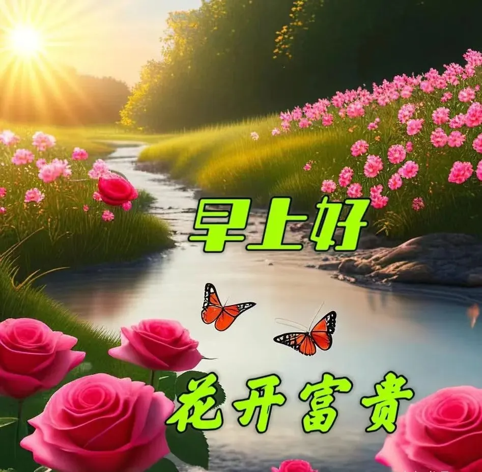 立志要如山,行道要如水,不如山,不能坚定,不如水,不能曲达。早安! Aspire like a mountain, walk like water, not as firm as a mountain, not as strong as water, not as meandering. good morning! 温暖的味道在清晨的怀抱中香甜有营养,浪漫的味道在天亮的祝福中香甜好滋养,幸福的味道在最早的祝福中快乐升级,亲爱的,早上好。 The warm taste is sweet and nutritious in the embrace of the morning, the romantic taste is sweet and nourishing in the blessings of dawn, and the taste of happiness is happily upgraded in the earliest blessings. Good morning, dear.