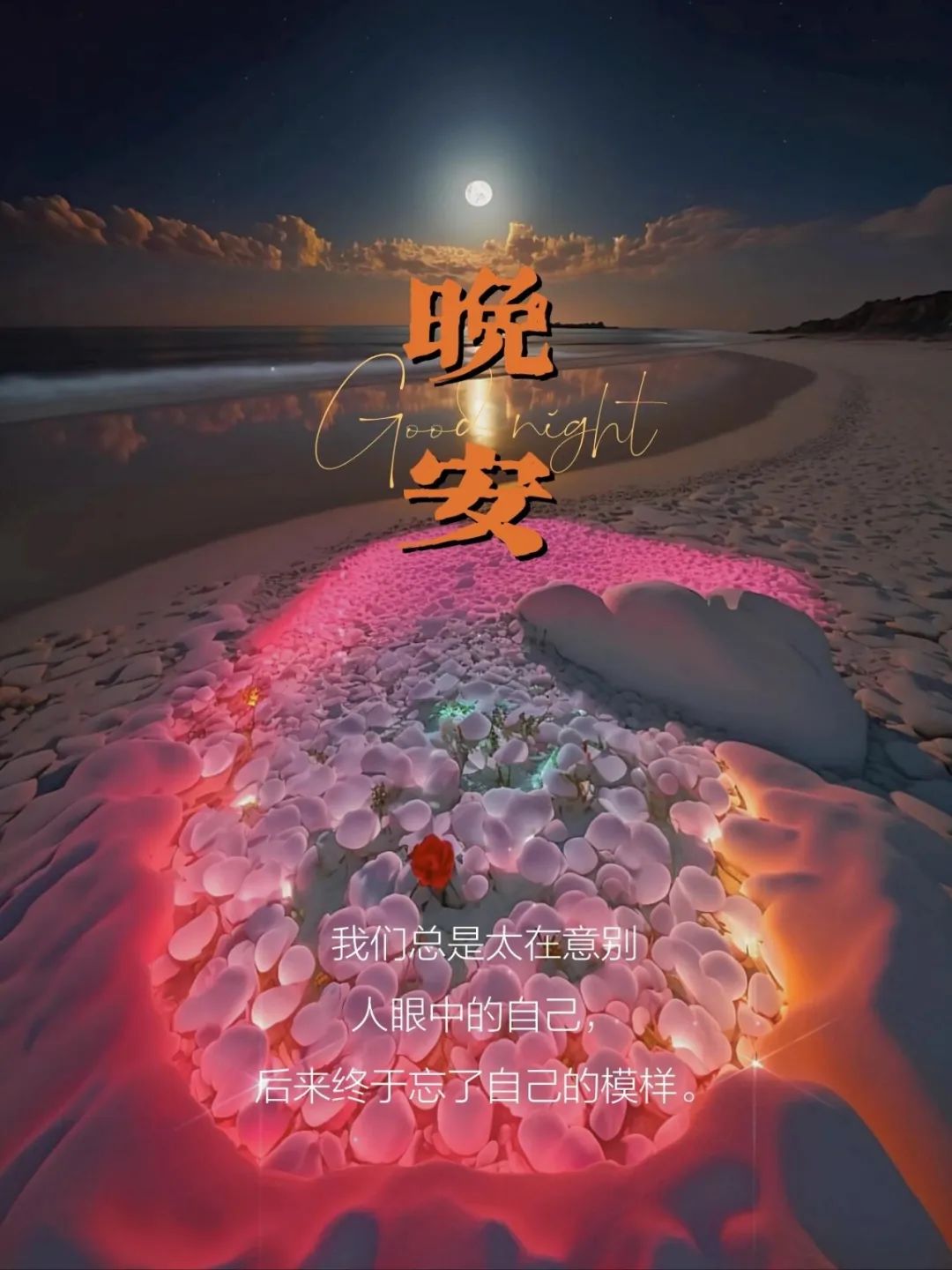 时间是个极好的疗伤师,它轻轻抚平曾经的伤痛,让不可原谅的变得宽容,让过不去的成为过去。或许偶尔思念过去的美好瞬间,但生活总催人向前。愿你在夜色中安然入睡,明天以崭新的姿态迎接新的可能。🌟晚安!🌙 Time is a wonderful thing, forgiving the unforgivable and passing the past that cannot be erased. Perhaps occasionally reminiscing about the beauty of the past, but one must always learn to look forward. good night! 无法唤醒装睡的人,亦无法挽留决意离去的人。心意不可表露过满,夜不宜熬夜至深夜。不论生活如何艰辛,善待自己才是真谛。爱自己多一点,给自己一个美好的夜晚,好梦相伴。🌙晚安!😊 You can never wake up someone pretending to be asleep, nor can you keep someone who is about to leave. Don't love too much, don't sleep too late, be good to yourself in difficult days. good night!