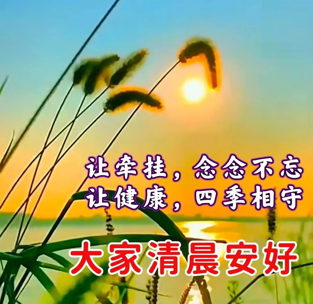 走过几十年的风雨人生路,经历了苦涩与疲惫,也曾品味过生活的甘甜。青春年少时的风华正茂虽已逝去,但年老时的健康才是无价的财富。让我们珍惜每一天,善待自己,多保重身体。祝福你的每一天都充满健康与活力,早安,愿你幸福安康!🍀🌟✨早安吉祥! Taste life for decades, there are hardships, tiredness, and sweetness. In the prime of life, health is the most valuable. Treat yourself well and take care of yourself, wishing you health every day. Good morning and good luck! 早上好!一天之计在于晨,所有的美好从早晨开始!收拾好心情,晒晒太阳,温暖整天!人啊,只有健康地活着,照顾好自己,照顾好家人。忘记往日的忧伤与烦恼,收获美好的期盼与幸福! Good morning The plan of the day begins in the morning, and all beauty begins in the morning! Pack up your mood, bask in the sun, and keep warm all day! People, only by living healthily, taking care of themselves, and taking care of their families. Forget the sadness and troubles of the past, harvest beautiful expectations and happiness!