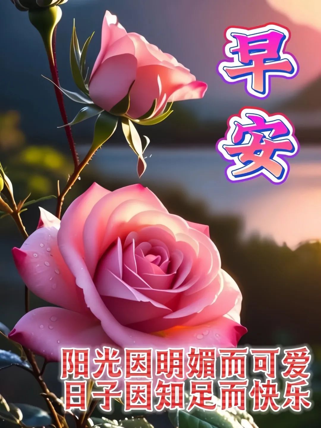 亲爱的,新的一天开始了!随着晨光初露,我带着清新的问候和温馨的祝福来到你的身边。愿你在这个美好的早晨,精神焕发,充满活力。像春天的阳光一样明媚,像盛开的花朵一样快乐。今天,愿你事事顺心,一切美好如初🌼🌟。 Good morning, my dear. At this moment of dawn, I send you fresh greetings and warm blessings. Early morning is the starting point of hope. May you be full of energy and vitality like the warm spring sun, and happy like blooming flowers today. Everything goes smoothly and everything is incredibly beautiful! 我把一份真挚的祝福送给你,愿你在每一个清晨,都能感受到这份祝福的温暖与力量。早安,愿你一切顺心如意! I send you a sincere blessing, hoping that you can feel the warmth and power of this blessing every morning. Good morning, may everything go smoothly for you!
