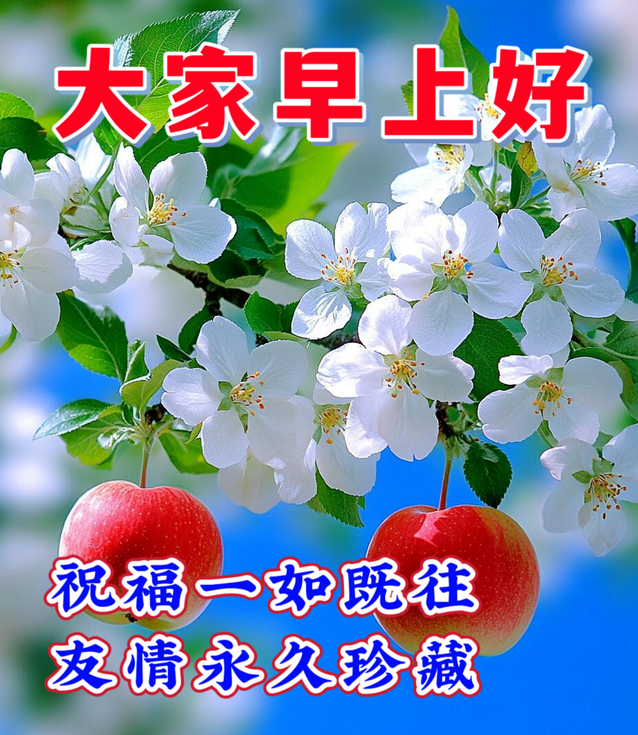 人们为什么轻言放弃?因为他们只是看到前方路途遥远,而忘记了身后的一路坚持。早安! Why do people easily give up? Because they only see the distance ahead and forget the perseverance behind them. good morning! 清晨,阳光洒进窗台,带来活力满满。愿你如春日繁花,绽放心间的欢颜,每分每秒都被幸福围绕,每天都能收获小确幸,开启元气满满的一天!早安,我的朋友们! In the morning, the sunlight shines on the windowsill, bringing vitality. May you bloom like spring flowers, with joy in your heart, surrounded by happiness every minute and every second. May you reap small blessings every day and start a day full of vitality! Good morning, my friends!