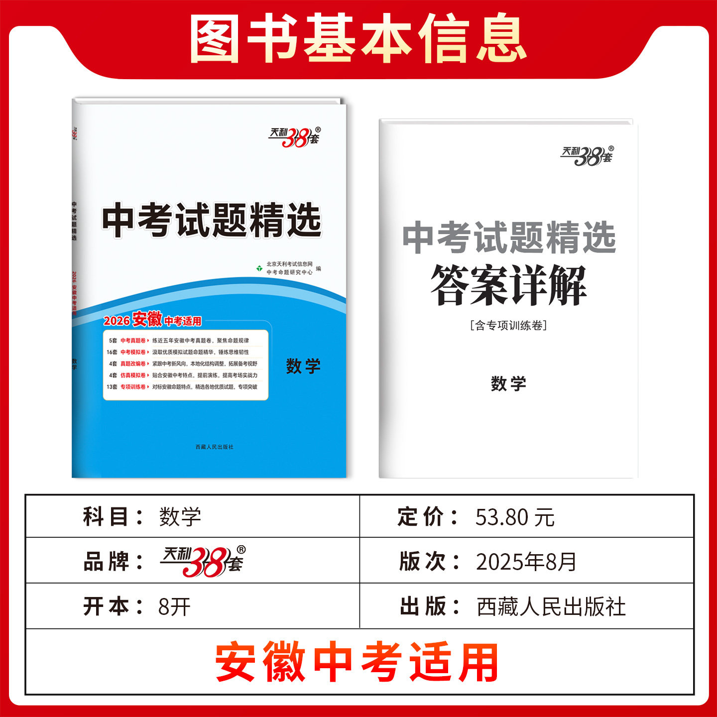 天猫现货科目任选天利38套2026中考安徽中考试题精选中考 附详解答案2025安徽省中考各市中考真题及模拟试题复习习题资料