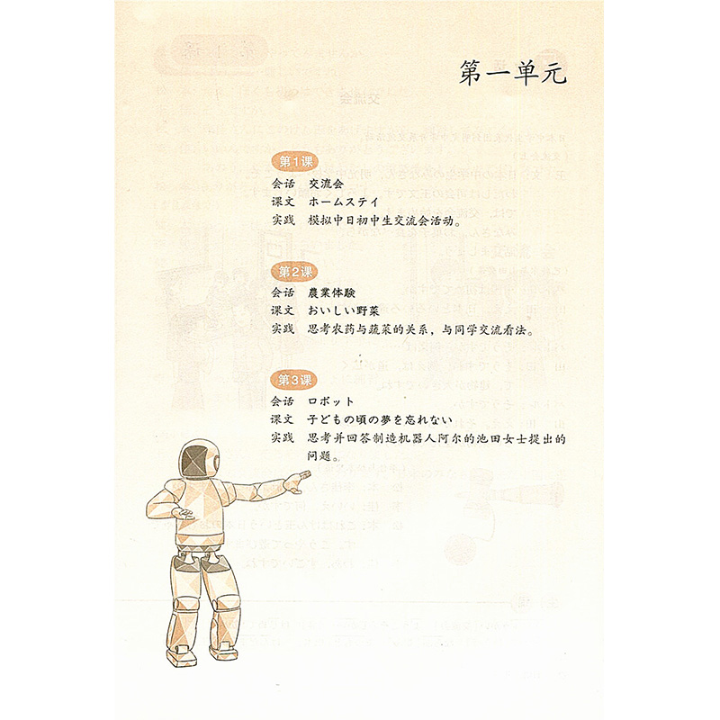 人教版初中日语教材9,九年级全一册日语课本教科书,由人民教育出版社出品。本书针对初三学生,内容全面涵盖日语基础知识、语法、阅读、听力等。内容详实,系统性强,旨在帮助学生全面提升日语水平。该书是初中日语学习的必备资料,适合学生自学或课堂教学使用。人民教育出版社的优质品牌保障,让学生学习更放心。本书为全一册,方便携带,随时随地学习。是初三学生日语学习的理想选择。