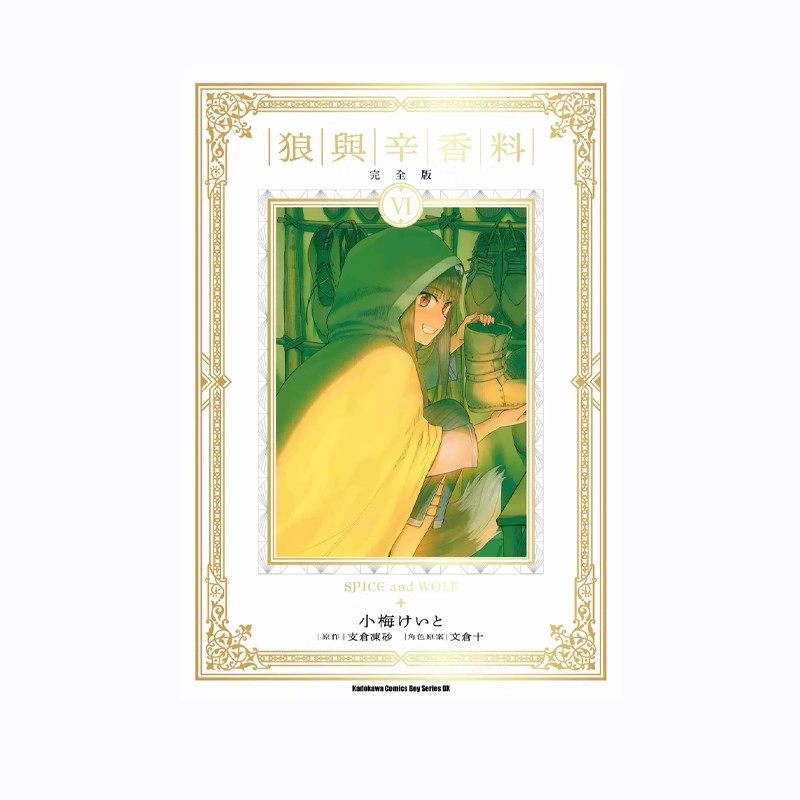 现货即发!台版《狼与辛香料》完全版第6卷首刷限定版,由角川出版精心推出,支仓冻砂著,绿山墙动漫正版授权。本作为首刷限定版,内含特制书盒、精美彩页及独家特典,极具收藏价值。故事延续旅行商人克拉福与贤狼赫萝的温馨冒险,融合经济哲理与奇幻 romance,文笔细腻,情感真挚。封面采用高品质印刷,装帧考究,适合动漫迷与轻小说爱好者珍藏。现货发售,包装严实,确保运输安全。喜爱《狼与辛香料》系列的读者不容错过这一经典再版之作,即刻入手,感受人狼之间跨越种族的深情羁绊。
