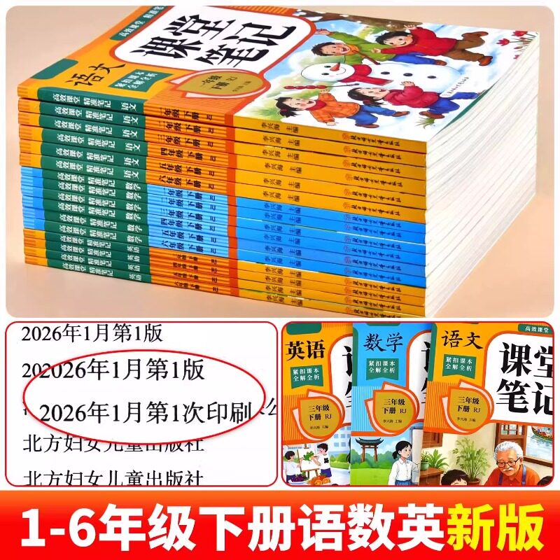 2026新版《课堂笔记》一二三四五六年级下册,涵盖语文、数学、英语三科,严格依据人教版(人教部编版)教材编写,是小学生同步学习的优质辅导资料。本书紧扣课本知识点,逐课梳理重点难点,配有清晰讲解、例题解析与随堂练习,帮助学生高效掌握课堂内容。无论是暑假预习还是学期复习,都能提供系统、实用的学习支持。内容编排科学,图文并茂,语言通俗易懂,适合小学生自主学习与家长辅导使用。一本在手,同步课堂,轻松提升学习效率,夯实基础,助力成绩稳步提高。