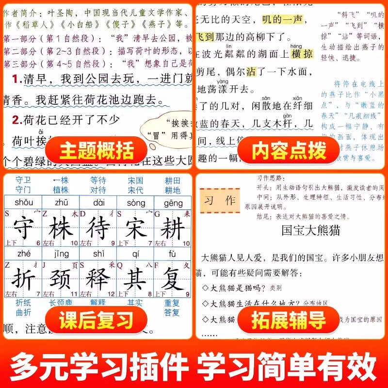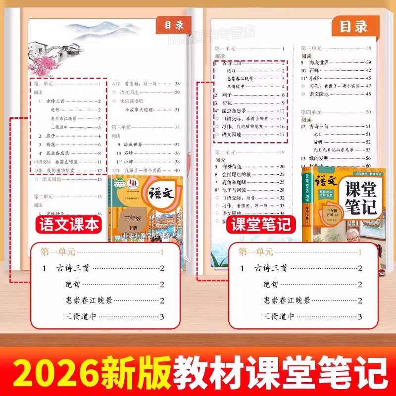 天三年级下册课堂笔记2026春季新版人教版部编版同步语文数学课本教材小学英语中文翻译正版课堂笔记课本原文全讲解预习资料辅导书本