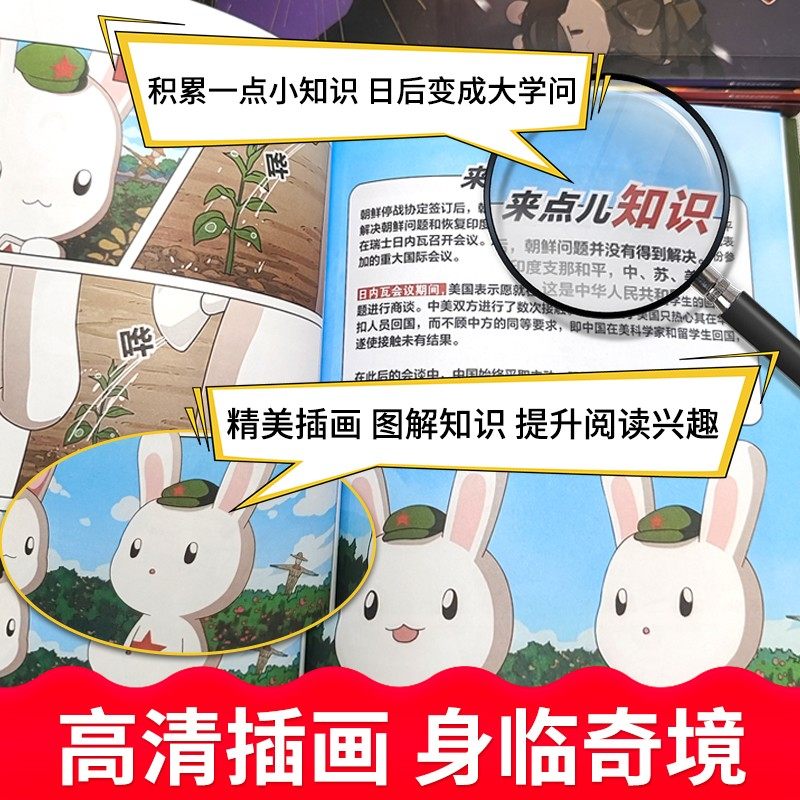 《那年那兔那些事儿》1-10册正版全套,由逆光飞行(麻蛇)创作,专为6-12岁青少年打造的爱国主义漫画书。本书以萌趣可爱的动物形象演绎中国近代史重大事件,将抗美援朝、两弹一星、港澳回归等历史故事生动呈现,寓教于乐。内容严谨、画风幽默,兼具知识性与趣味性,帮助孩子轻松理解国家发展历程,培养民族自豪感与爱国情怀。作为中小学生历史科普与励志读物,它不仅传递正能量,更激发阅读兴趣,是家庭与学校推荐的优质课外书籍。抖音同店正版保障,品质放心,助力孩子在欢笑中成长,在故事中铭记历史。