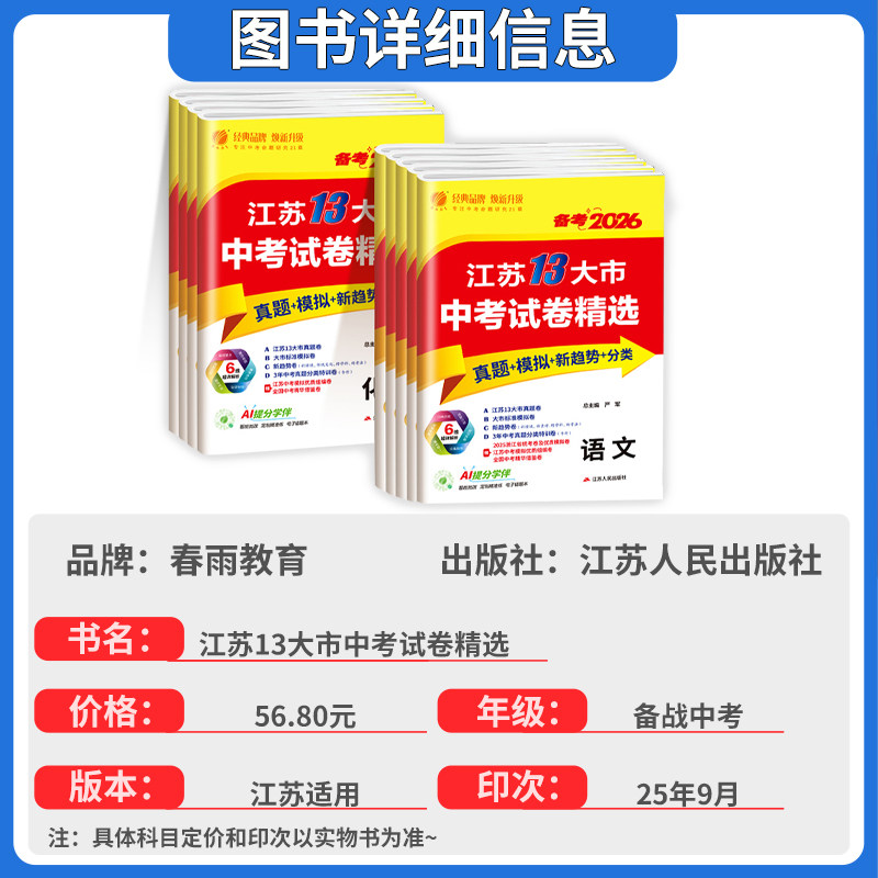 天猫备考2026江苏13大市中考试卷精选科目任选24真题语文/数学/英语/物理/化学/历史/政治考必胜中考真题卷江苏省十三市中考试卷