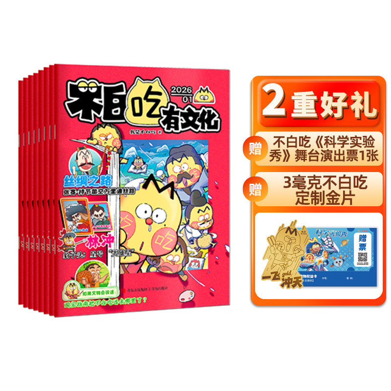 天猫【送金片+演出票】不白吃有文化杂志 2026年1月起订 1年12期杂志铺 6-12岁儿童历史全彩知识漫画百科期刊订阅