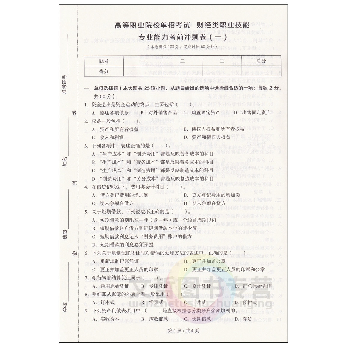 天猫2026年高职单招考试财经类职业技能考前冲刺卷 高等职业院校单独招生全真模拟卷职高中职升学总复习押题卷猜题卷预测卷