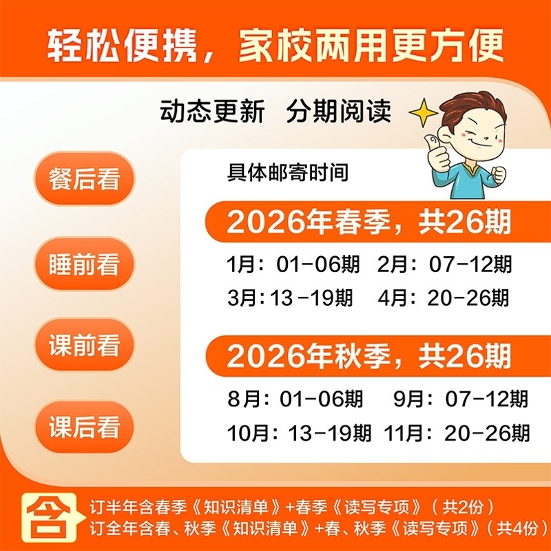 天阳光少年报小学版/初中版2025年【全年订阅送好礼】2026年1-12月24春夏秋冬合订本报纸杂志大少年1-6年级中小学生科普好奇号过刊