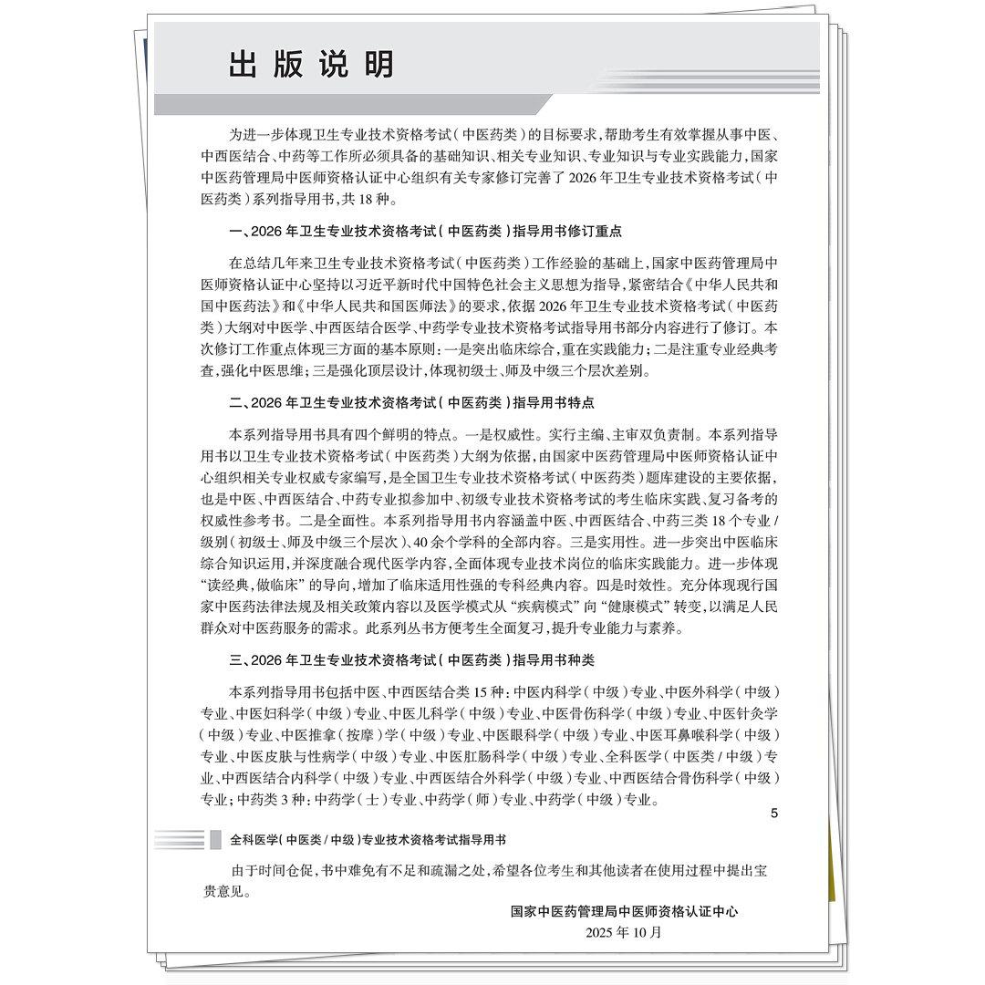 《中医药2026中医推拿按摩主治医师考试指导教材》由中国中医药出版社于2025年出版,专为备战全国卫生专业技术资格考试(中级)的考生精心编写。本书紧扣最新考试大纲,系统梳理中医推拿按摩学核心理论与临床技能,涵盖经络腧穴、手法操作、常见病证治疗及康复保健等内容。配套题库与模拟卷紧扣真题风格,强化实战训练,帮助考生查漏补缺、提升应试能力。教材内容权威、结构清晰、重点突出,是中医推拿按摩专业考生复习备考的权威指导用书,助力考生高效通关,胜任主治医师岗位需求。