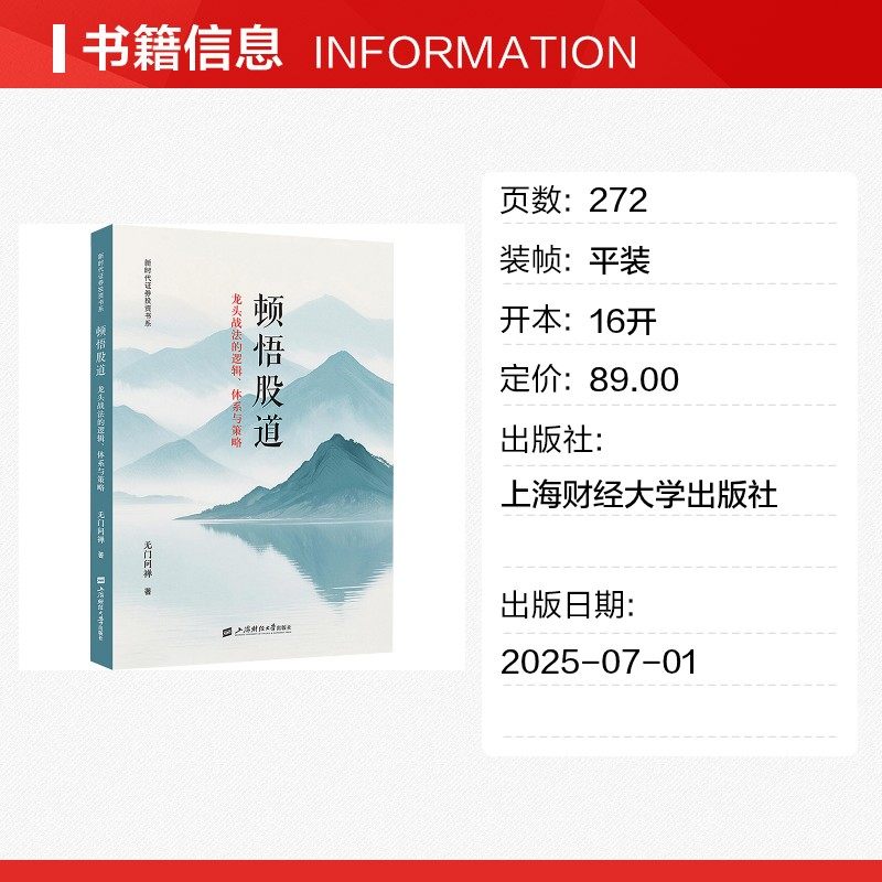 《顿悟股道:龙头战法的逻辑体系与策略》由无门问禅著,上海财经大学出版社出版,新华书店正版发行,是一部深度解析龙头股操作精髓的实战指南。该书系统构建了“情绪周期—题材共振—资金博弈”三位一体的龙头战法逻辑体系,强调在市场中捕捉具有引领效应的强势个股。作者结合多年实战经验,融合技术分析、市场心理与主力操盘行为,独创“振荡指标”辅助判断买卖时机,提升决策精准度。书中案例详实,策略清晰,既适合短线高手,也助力普通投资者建立理性投资框架,被誉为揭开龙头股暴涨密码的智慧之作,是进阶股市高手的必读经典。