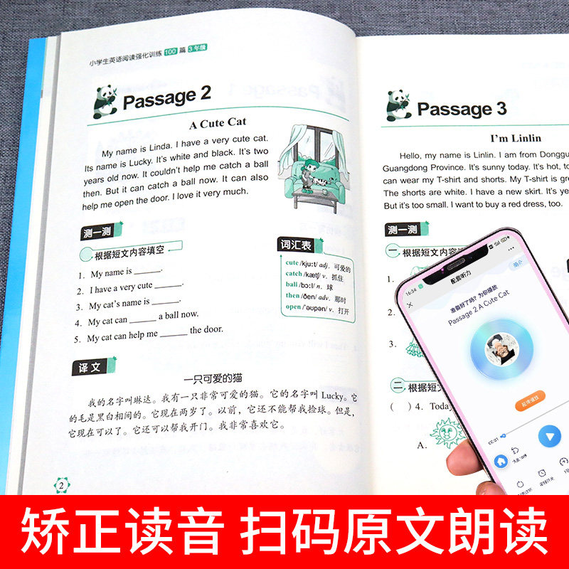 小学英语听力90篇阅读90篇一二三四五六年级第三版小升初听外教朗读音频含答案每天1篇阅读+1篇听力一日一练小学英语课外练习题