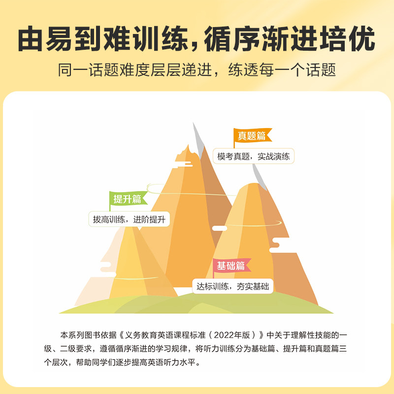 《星火英语小学英语听力专项训练》专为小学一至六年级学生设计,覆盖上下册内容,紧扣教材知识点。全书精选100篇听力练习题,由外教标准朗读,语音纯正、语速适中,帮助学生提升听力理解能力。题型丰富多样,涵盖单词辨音、句子理解、对话应答及短文听力等,循序渐进,适合不同年级水平。每篇练习配有阅读理解环节,强化语言综合运用能力。配套“天天练”模式,便于学生每日坚持训练,巩固所学。本书注重趣味性与实用性结合,是小学生提升英语听力、夯实语言基础的优质辅助材料,助力孩子在英语学习中稳步前进。