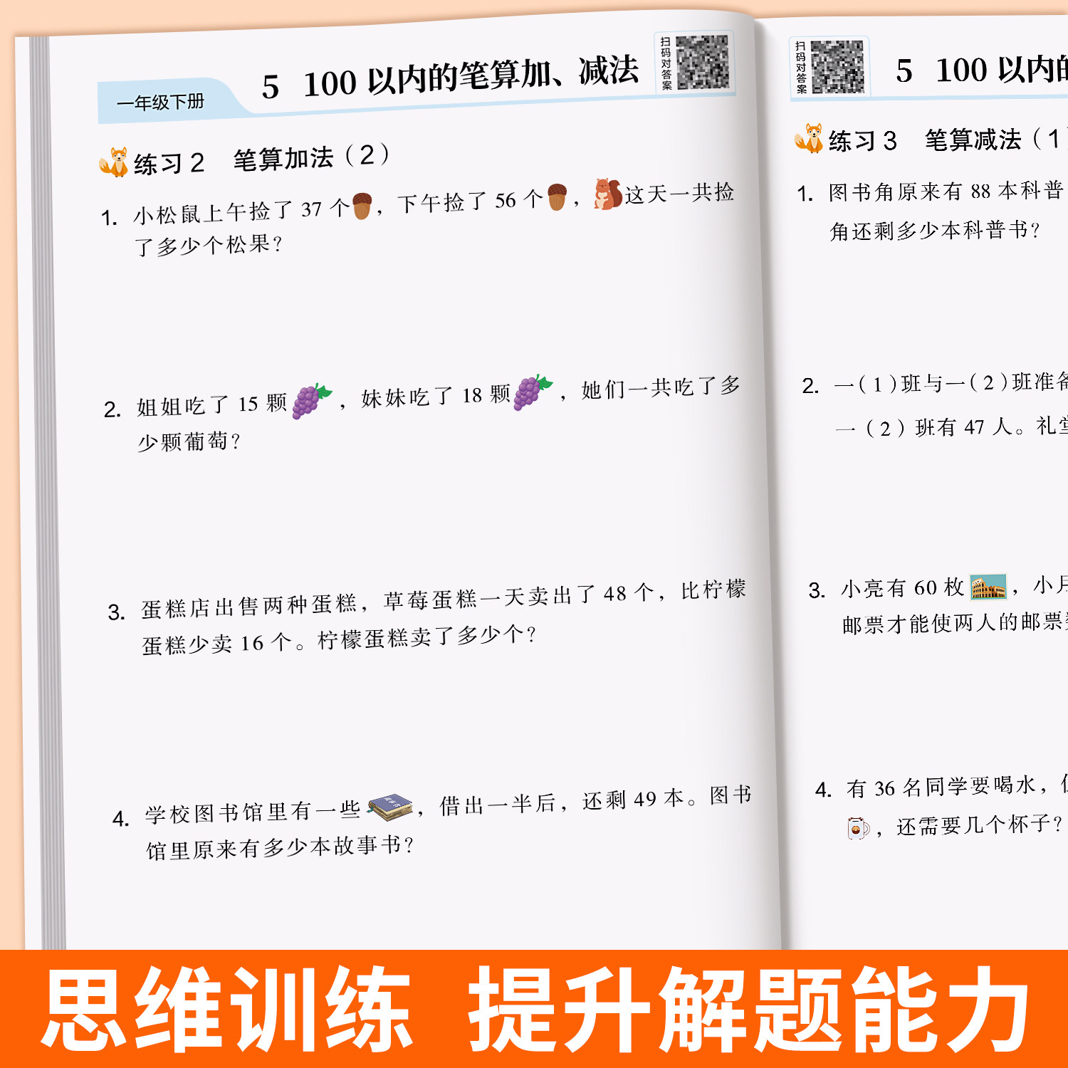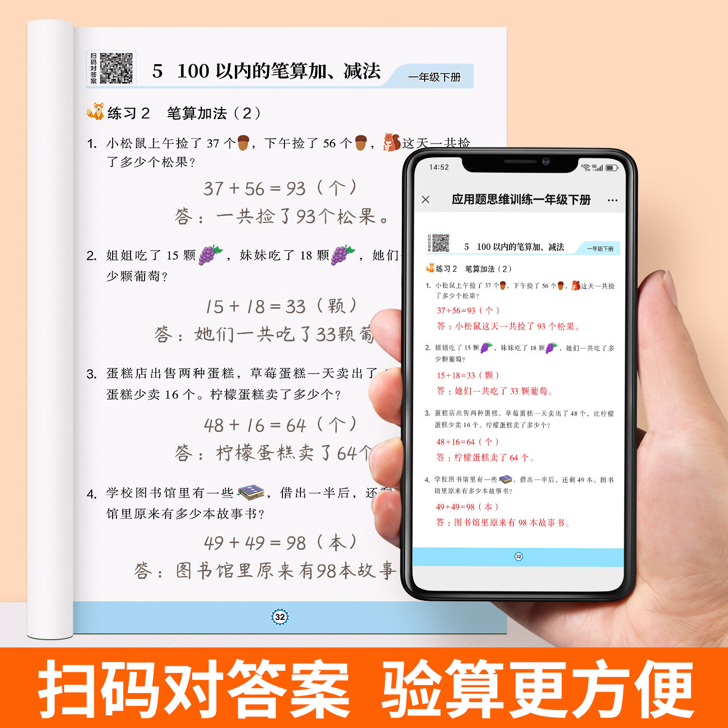 天猫一年级下册数学口算应用题天天练人教版同步练习题口算题卡每日一练100以内加减法专项练习本1年级下学期数学计算应用题思维训练