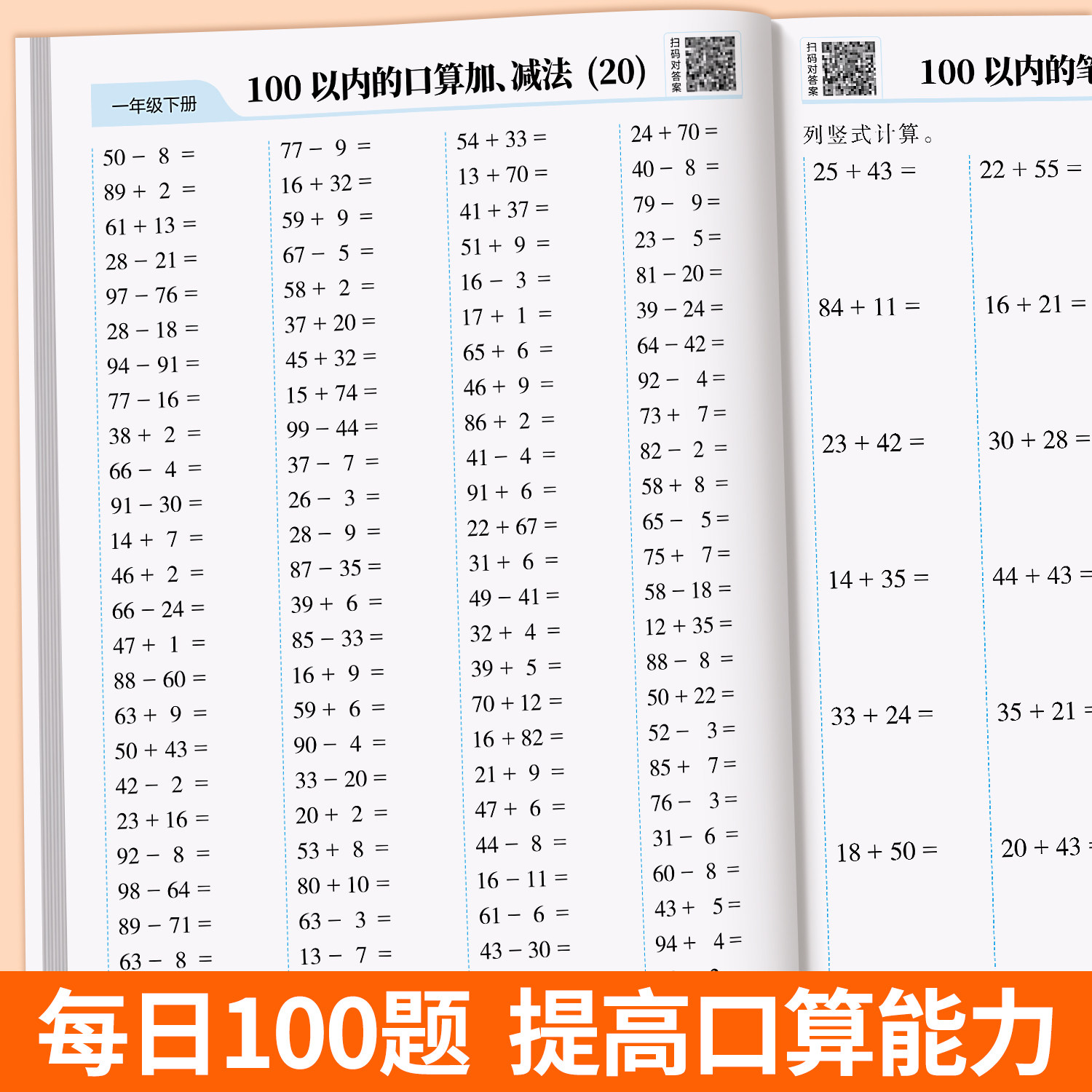 口算天天练一年级数学练习题上册下册人教版二三四五六口算题卡每天一练10 20 100以内加减法计算数同步速算本专项练习册思维训练