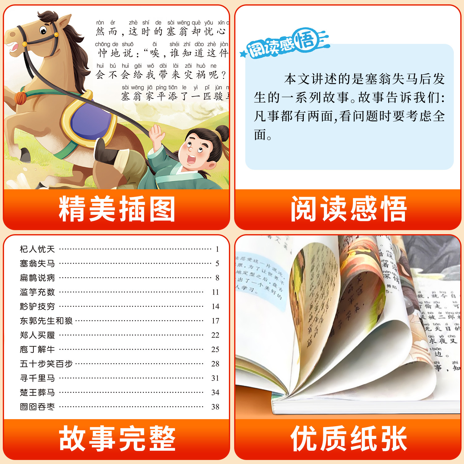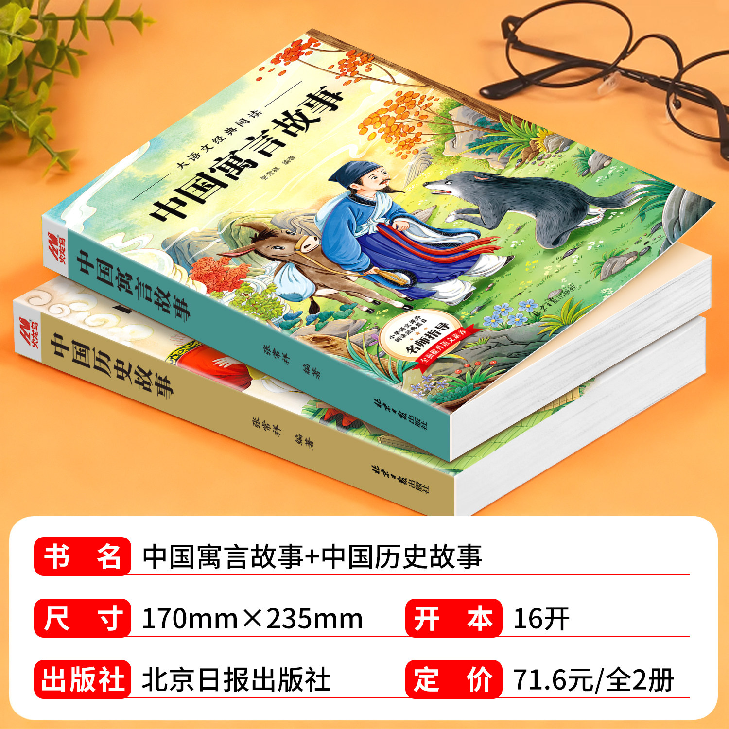 《中国寓言故事+中国历史故事》(全2册)专为小学低年级学生精心编写,精选经典寓言与历史典故,语言生动浅显,配以精美彩图和全文注音,帮助孩子轻松阅读、自主识字。内容涵盖“守株待兔”“孔融让梨”“司马光砸缸”等耳熟能详的故事,寓教于乐,启迪智慧,培养品德与历史认知。加厚纸张,装订牢固,适合反复翻阅。本书被多所小学列为课外阅读推荐书目,是一至三年级学生拓展知识、提升阅读能力的理想之选,助力孩子在趣味中成长,在经典中汲取中华优秀传统文化精髓。