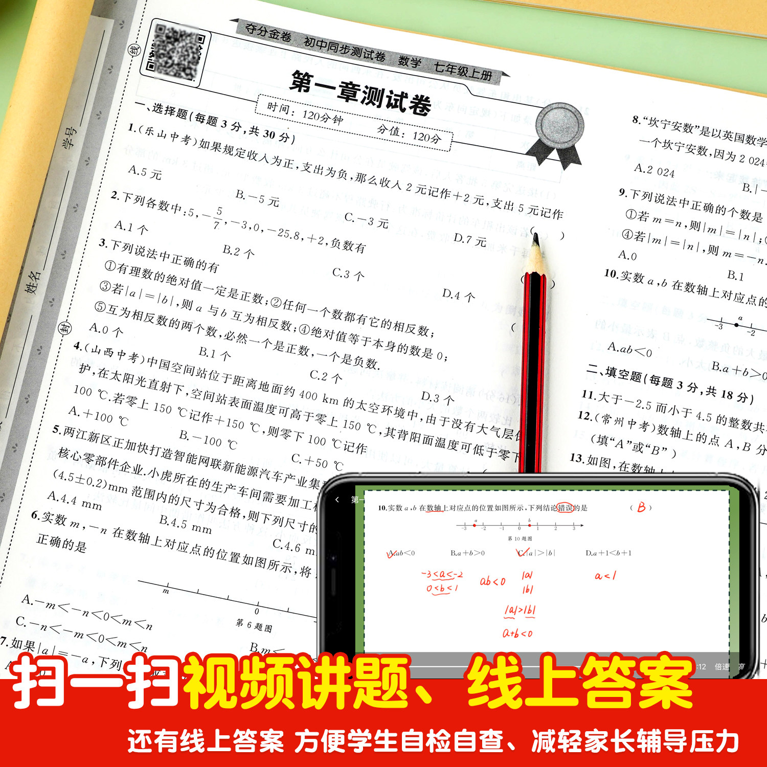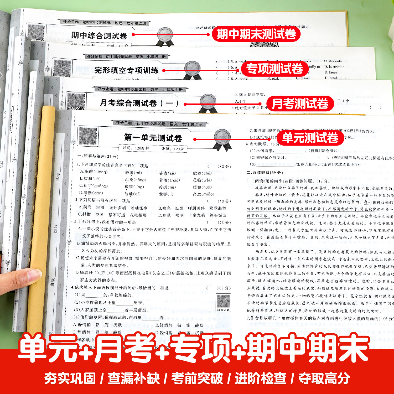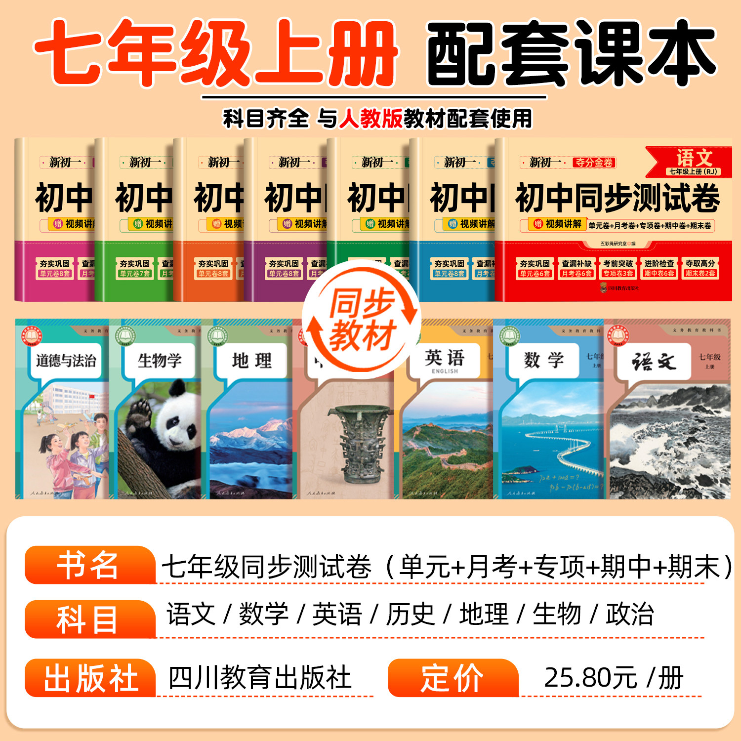 天猫初一七年级上下册试卷全套2026新版人教版 数学小四门必刷题教辅资料同步练习册初中道德与法治语文英语生物地理历史期末复卷子7