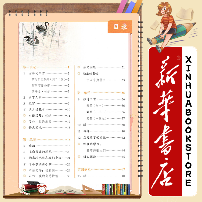 天猫新华书店正版新版小学4四年级下册语文人教版四年级下册语文书部编版人民教育出版社四年级下册语文课本人教正版新学期教材教科书