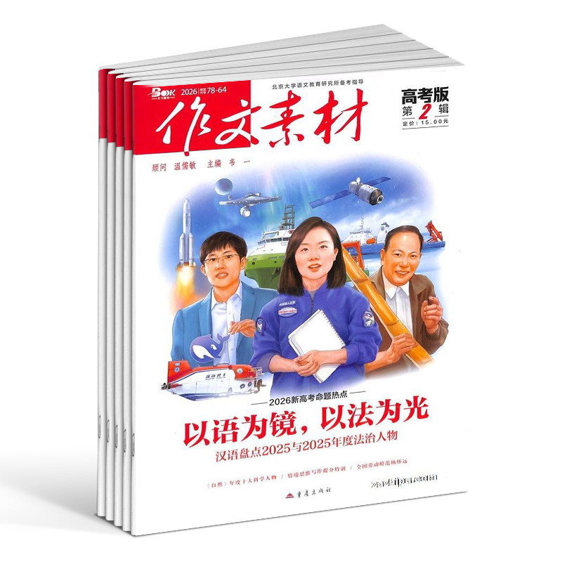 1-2月新推出的《作文素材·高考版》2026/25年刊,专为高中生语文备考打造,内容紧扣高考命题趋势,精选时事热点、经典美文与高分范文,助力提升写作能力。杂志涵盖全年热点话题、人物素材、名言警句及写作技巧,兼具实用性与时效性。现于杂志铺旗舰店推出半年、全年、季度及单期订阅服务,灵活选择,便捷送达。订阅即享好礼相送,更有配套写作指导与模拟题解析,是高中生积累素材、冲刺高分的理想之选。无论是日常积累还是考前冲刺,《作文素材·高考版》都是语文学习的得力助手。