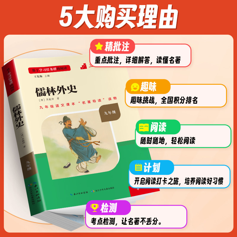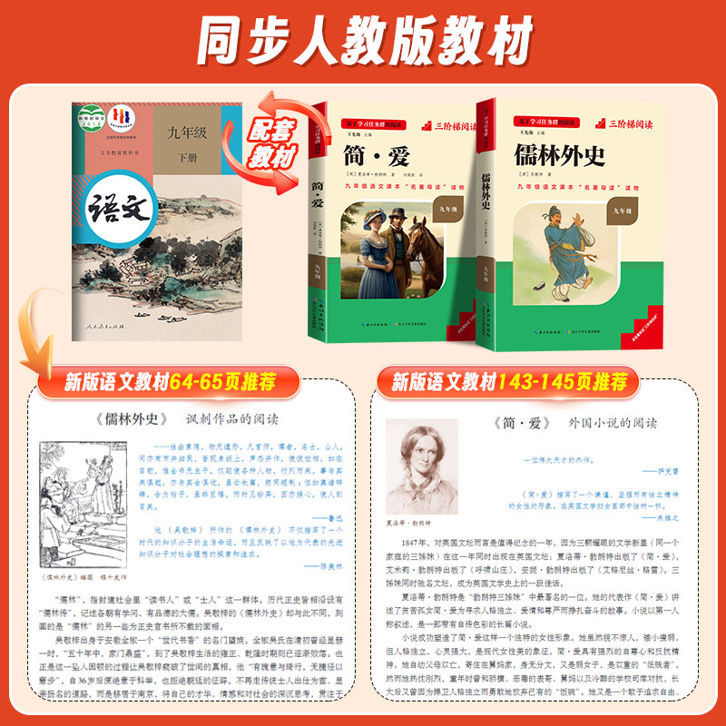 天猫儒林外史正版原著简爱书籍人教版九年级下册必读名著课外书籍全套吴敬梓初中生初三语文配套阅读完整版人民教育出版社书目9下和