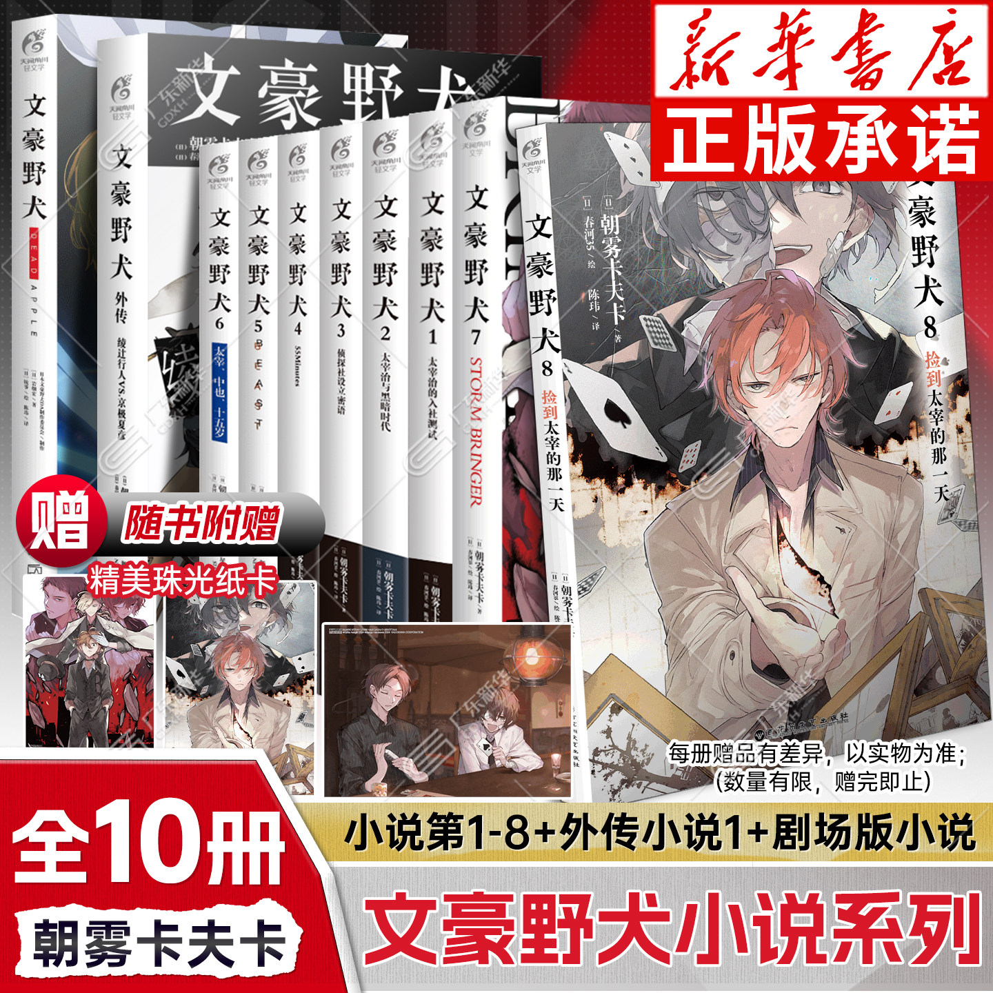 【文豪野犬】正版全套73册漫画小说震撼集结!涵盖主线、BEASTif线、汪!Q版、十五岁、DEAD APPLE外传及官方公式书,内容完整,收藏必备!由天闻角川正版引进,品质保障。随书附赠精美透卡、海报、贴纸等丰富周边,超值回馈粉丝。无论是太宰治、中原中也等角色的深度刻画,还是异能战斗与文豪羁绊的热血剧情,皆一览无遗。Q版萌系画风与严肃外传相辅相成,满足多元阅读体验。是文豪野犬爱好者不可错过的珍藏套装,带你沉浸于横滨的异能世界,感受文字与热血交织的魅力!
