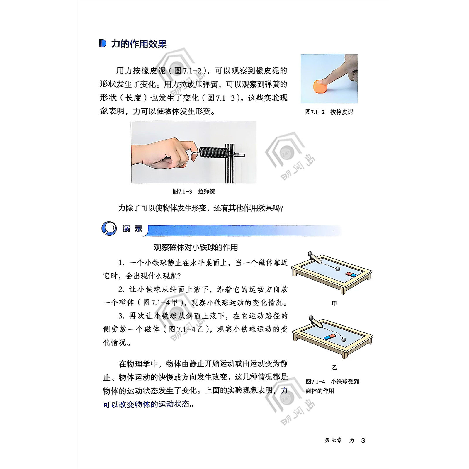 2026年适用的新华书店官方旗舰店正版《初中物理八年级下册》(人教版)是由人民教育出版社出版的官方教材,适用于初中二年级下学期。本书依据国家最新课程标准编写,内容涵盖力、运动和力、压强、浮力、功和机械能、简单机械等核心物理知识,注重理论与实践结合,配有丰富的实验探究与生活实例,帮助学生建立科学思维。教材编排科学严谨,图文并茂,语言通俗易懂,配有课后习题与拓展阅读,助力学生夯实基础、提升能力。作为教育部审定的权威教科书,本书是全国多地初中物理教学的标准用书,是学生课堂学习与课后复习的必备教材。