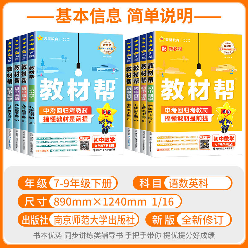 天猫浙江专用2026初中教材帮七八九年级上册下册数学科学浙教版语文英语政治历史地理生物人教版外研版初一二三教材解读课本全解辅导书