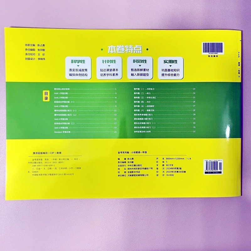 2025新版人教PEP版《英语同步测试卷》涵盖一年级至二年级上下册,紧扣教材内容,科学编排单元检测、期中期末复习及冲刺试卷。试卷题型丰富,难易适中,融合黄冈、海淀等名校优质资源,注重基础知识巩固与综合能力培优。每套试题均配有听力材料及音频,强化听说读写全方位训练。全书结构清晰,讲练结合,帮助学生夯实课本知识,提升应试能力,是小学生同步练习、阶段检测和考前冲刺的理想教辅,助力学生高效学习,轻松应对各类考试。