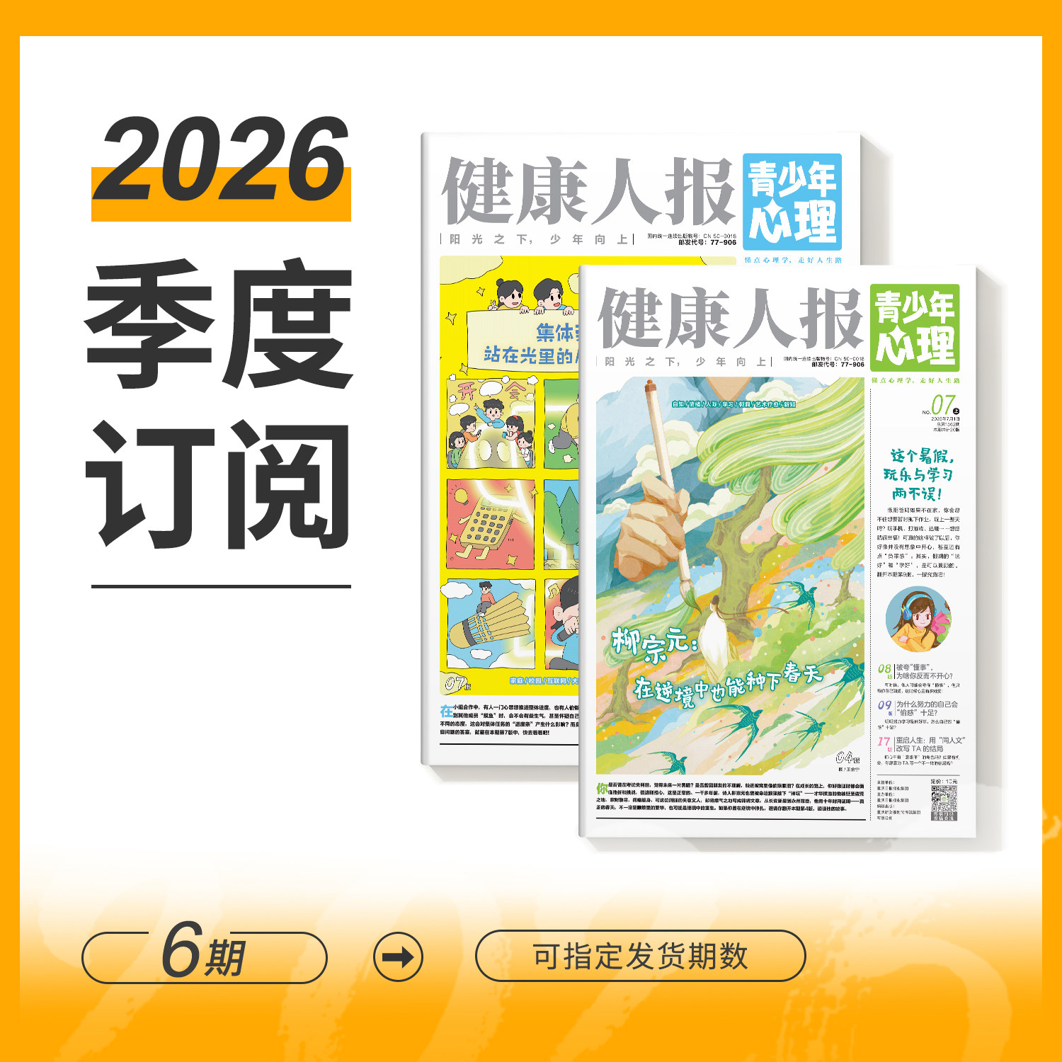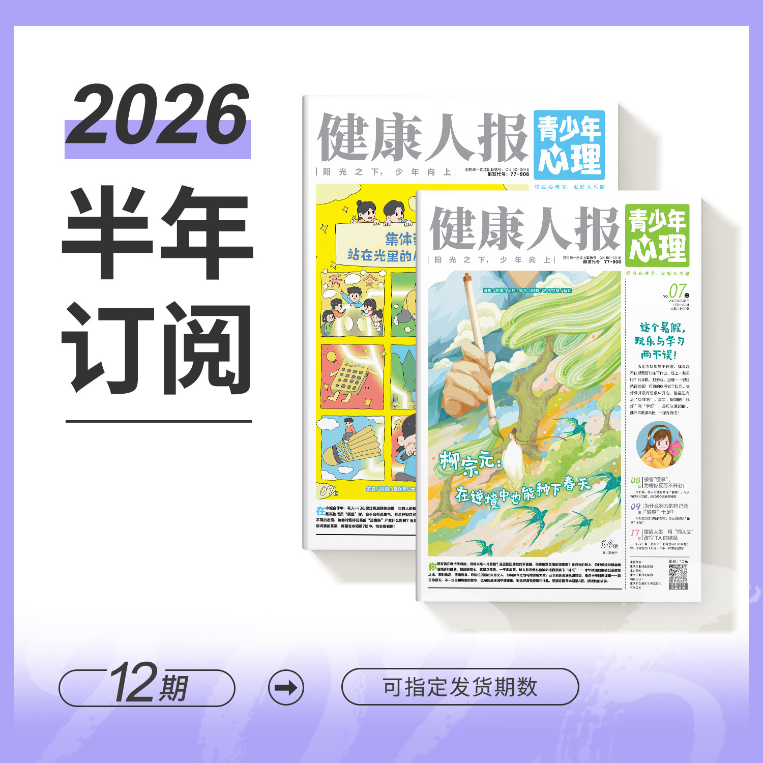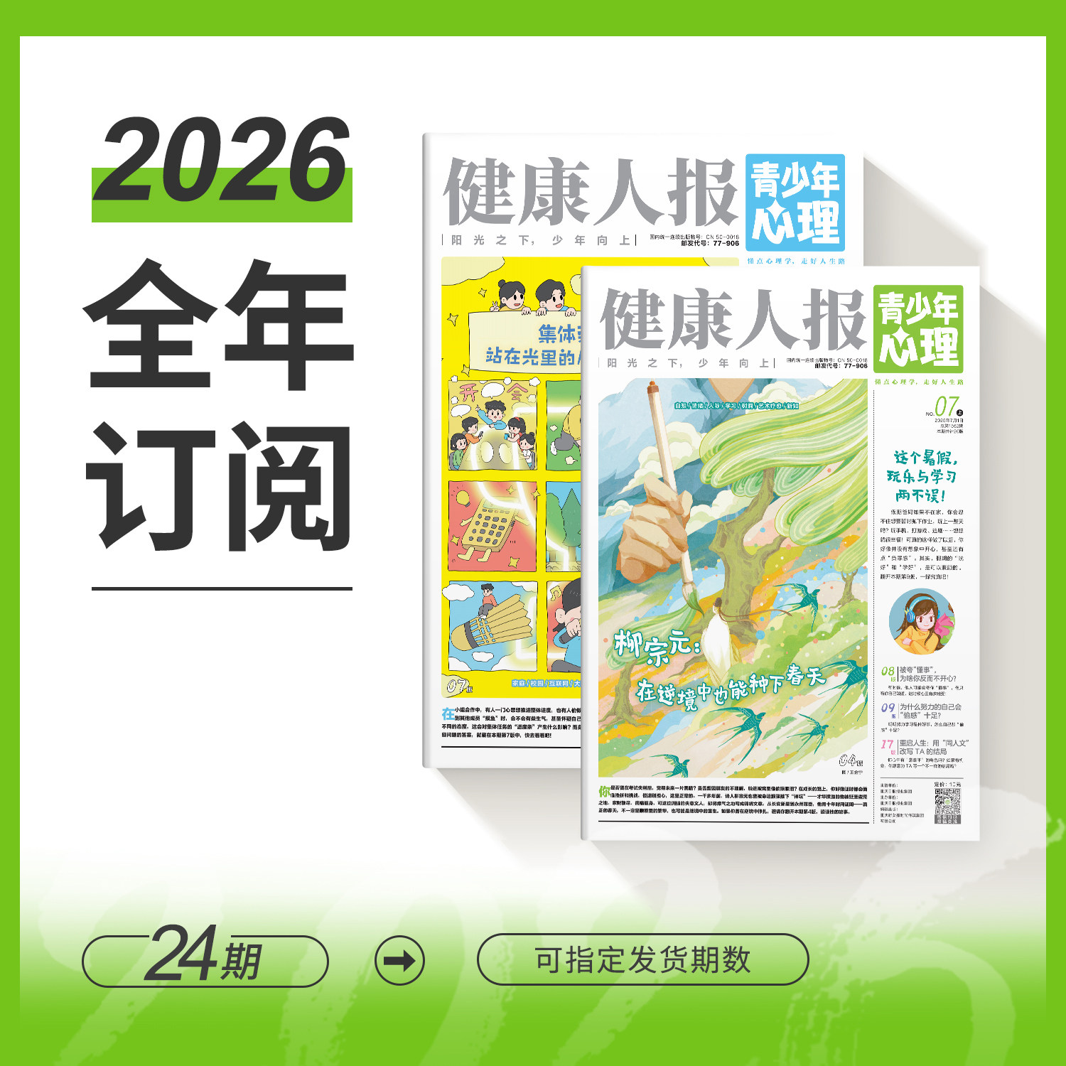 《青少年心理报·健康人报》专为8-15岁青少年打造,是一份集探索世界、认识自我、少年养成、生涯启蒙与解压治愈于一体的心理自助读物。每月两期,全年24期,以生动有趣的故事、贴近生活的案例和专业的心理学知识,帮助孩子理解情绪、建立自信、提升人际交往能力,并初步探索未来发展方向。内容涵盖成长困惑、学习压力、家庭关系等现实议题,用温暖而科学的方式引导青少年“懂点心理学,走好人生路”。不仅是心理成长的指南,更是陪伴少年心灵健康发展的良师益友。