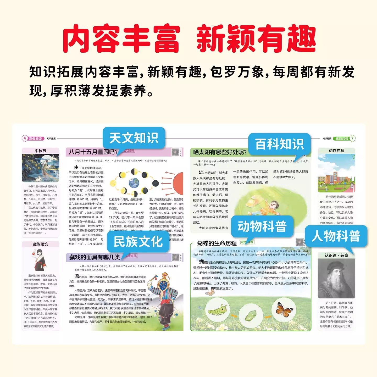 2026新版《寒假阅读趣读大语文知识画报》专为小学一至六年级学生设计,是寒假衔接新学期、拓展语文素养的优质期刊。内容紧扣教材,同步各年级语文基础知识,涵盖字词句段、古诗文赏析、阅读理解与写作技巧,兼顾课内巩固与课外拓展。每期精选经典美文、趣味故事及文化常识,图文并茂,寓教于乐,激发阅读兴趣。同时设置分层训练题,提升语言运用能力,助力学生平稳过渡新年级。作为寒假语文学习的得力助手,本画报融合知识性、趣味性与实用性,是学生夯实基础、拓展视野的理想读物。