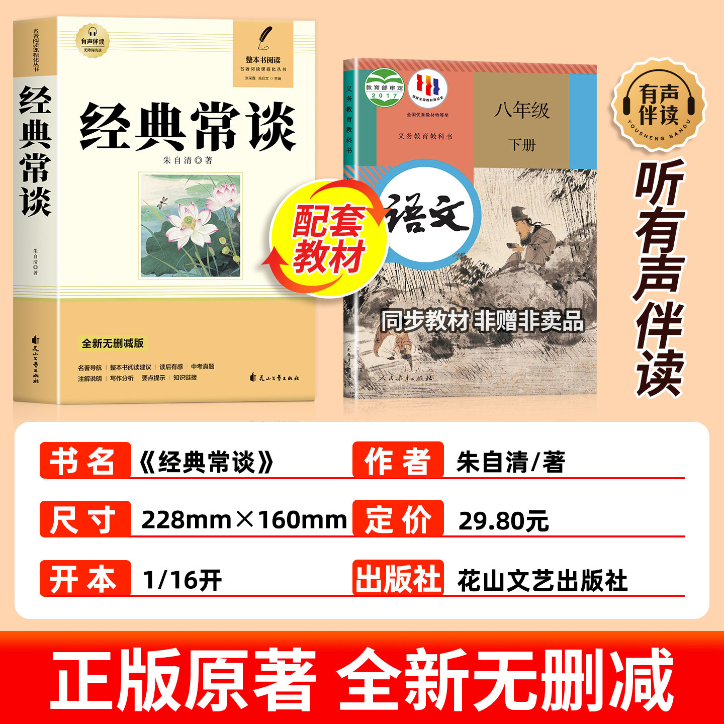 天猫经典常谈 朱自清原著人教版八年级下册课外书必读正版文学名著初中8下初二语文阅读推荐精典金典长谈常读完整版人民教育文学出版社