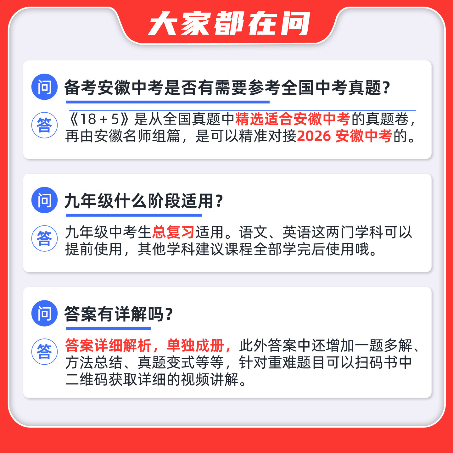 天猫木牍中考2026安徽中考试题精编数学物理化学语文英语政治历史18+5安徽省2025年中考真题卷全套初三九年级模拟试卷汇编精选木牍教育