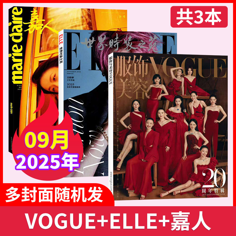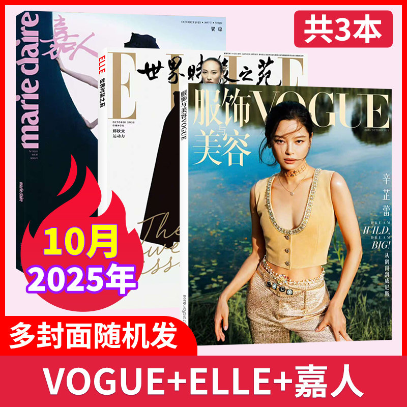 天猫【时尚穿搭共4本】2025年12/11月 时尚芭莎/ELLE世界时装之苑杂志/VOGUE服饰与美容/嘉人杂志/瑞丽服饰 潮流女性穿搭非过刊
