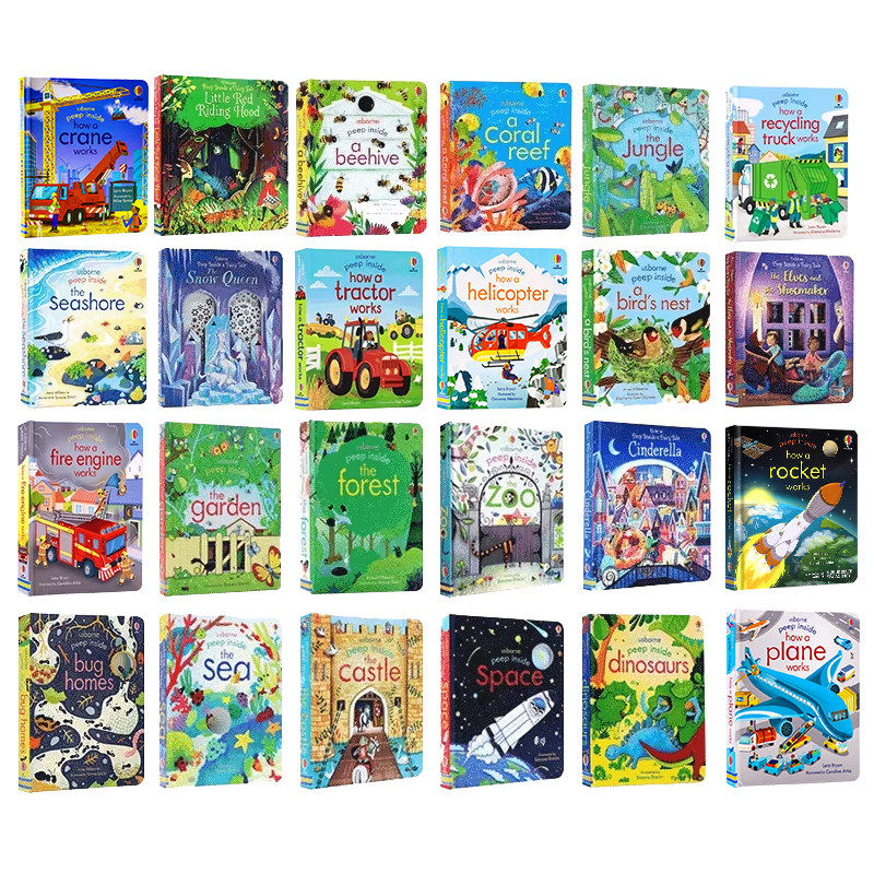 Usborne Peep Inside 系列是一套深受儿童喜爱的英文原版科普纸板翻翻书,全套共24册,本次合售包含《Space》《The Zoo》《Animal Homes》《Nighttime》等热门主题。每本书采用精美插图与互动翻页设计,激发孩子探索兴趣,在“偷偷看里面”的过程中学习自然、动物、宇宙等知识。内容语言简洁生动,适合3-8岁儿童英语启蒙与认知发展。纸板材质耐撕耐翻,安全环保,是亲子共读与早期阅读的理想选择。通过趣味问答与隐藏细节,培养观察力与好奇心,让孩子在动手翻看中爱上阅读与科学。