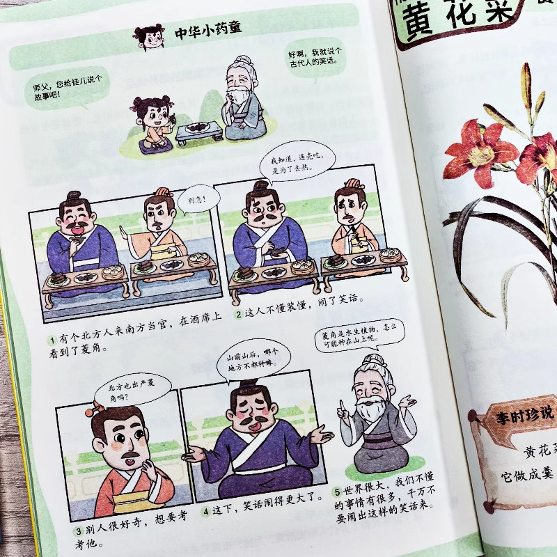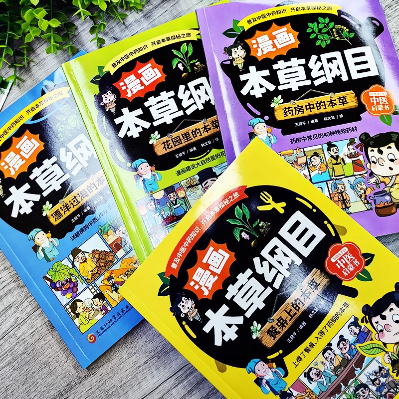 《漫画本草纲目》正版全4册是一套专为儿童打造的中医药科普启蒙读物,以生动有趣的漫画形式趣解东方药学巨著《本草纲目》。丛书分为《花园里的本草》《餐桌上的本草》《药房中的本草》《漂洋过海的本草》四册,从生活场景切入,将常见植物、食材与药用知识巧妙融合,让孩子在轻松阅读中了解中医药文化。内容严谨权威,语言通俗幽默,配以精美插图,既传承经典,又贴近现代儿童认知习惯。本套书不仅普及本草知识,更培养孩子的健康意识与文化自信,是家庭亲子共读、学校科普教育的优质选择,开启孩子探索中华传统医学的智慧之门。