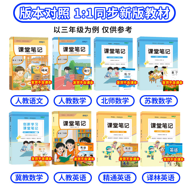 培状元26年春新版课堂笔记全套涵盖小学一至六年级语文、数学、英语上下册,同步人教版、北师大版、冀教版、青岛版、苏教版、外研版、译林版、精通版等主流教材,内容全面,版本齐全。本书以“全解”为核心,紧扣课本知识点,细化重点难点,配以清晰图解、例题解析和考点归纳,帮助学生高效预习、复习与巩固。编排科学,结构清晰,适合不同地区学生使用。无论是课堂学习还是课后自学,都能提供有力支持,是小学生夯实基础、提升成绩的理想学习伴侣。