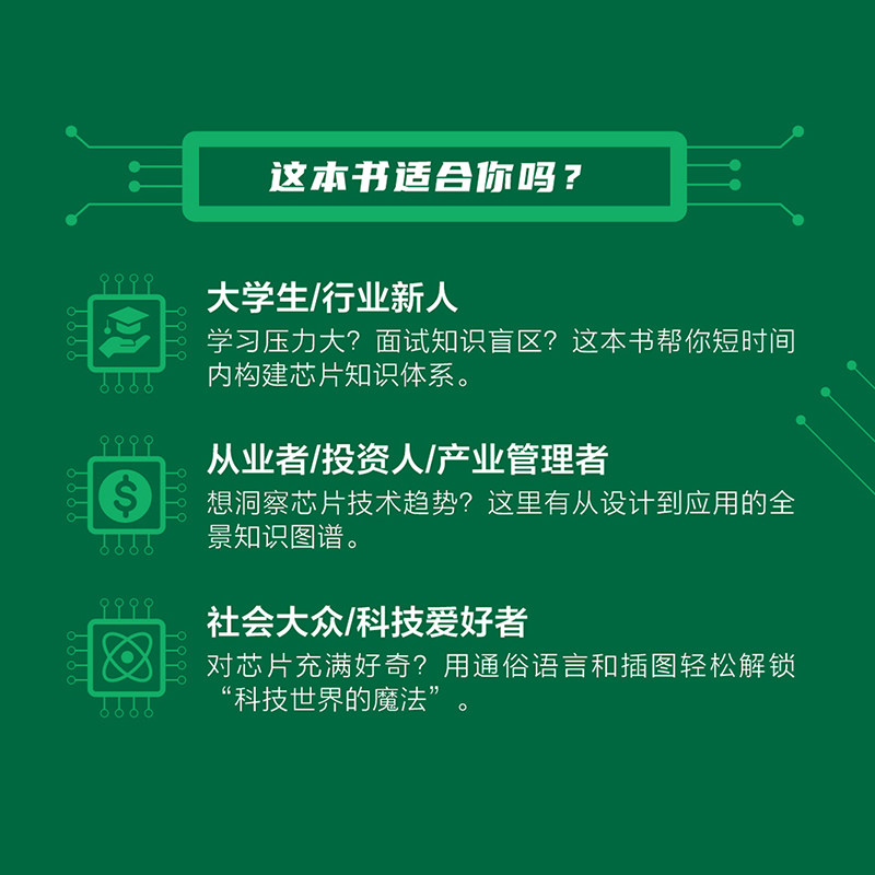 《芯片通识课:一本书读懂芯片技术》是一本面向大众的芯片科普读物,系统梳理了半导体产业的发展历程,涵盖芯片设计、制造、封装等核心技术环节。书中以通俗易懂的语言解析“芯片战争”背后的科技博弈与产业格局,讲述从晶体管发明到现代集成电路的演进简史,帮助读者全面了解芯片如何改变世界。作为新华书店正版书籍,由博库旗舰店发售,本书兼具权威性与可读性,适合科技爱好者、学生及对半导体行业感兴趣的读者阅读,是入门芯片知识的优质通识读本。