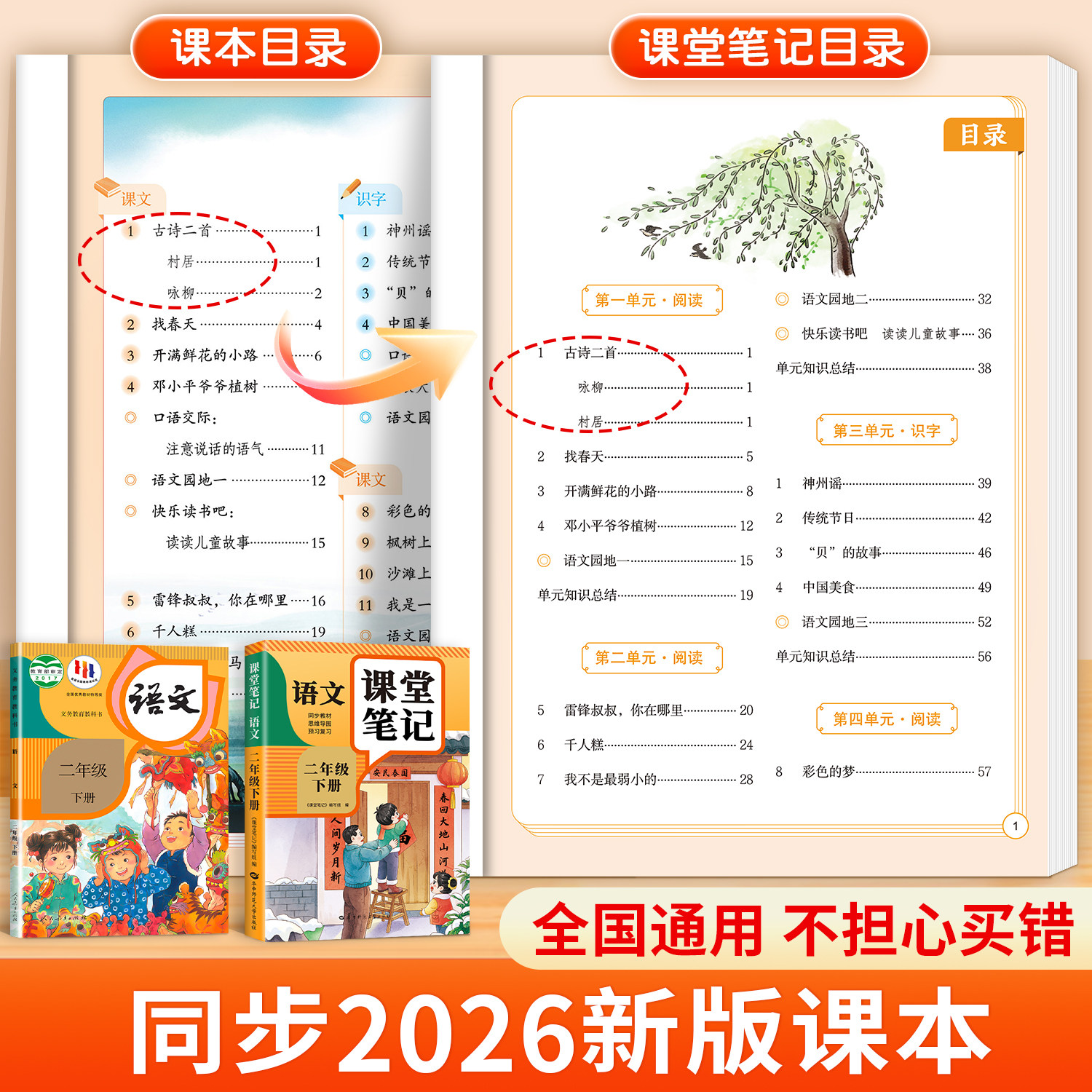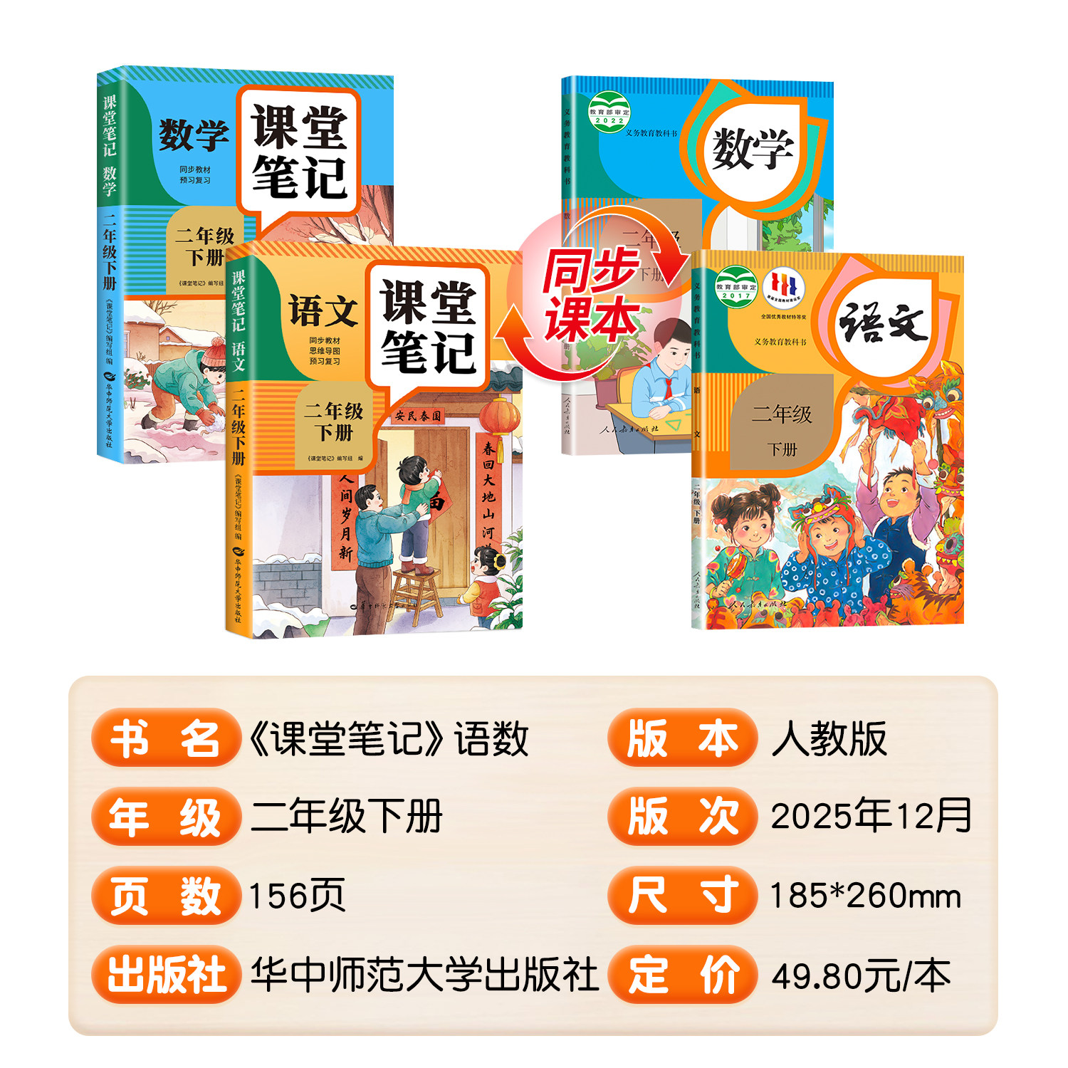 【2026新版】二年级下册课堂笔记(人教版)语文+数学,专为小学2年级学生打造,紧扣教材内容,同步课本知识点,助力高效预习与复习。本书融合黄冈名校教学经验,系统梳理每课重点、难点与考点,配有清晰图解、例题解析及拓展练习,帮助学生夯实基础、提升思维能力。内容编排科学,语言通俗易懂,适合学生自主学习与家长辅导使用。正版保障,印刷清晰,是孩子课堂学习的得力助手,也是提升成绩的理想辅导资料。全套包含语文、数学两科,全面覆盖下册全部课程,让学习更轻松、更高效。