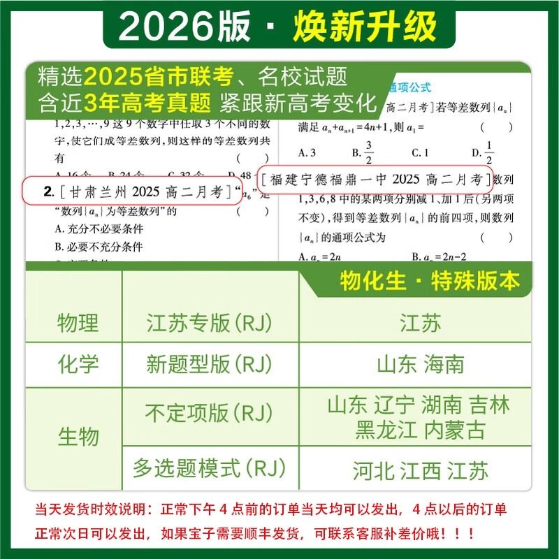 天猫2026高中数学物理必刷题必修二高一下册狂k重点必修一化学生物语文英语政治历史地理人教北师版新教材课本同步练习册资料书合订本