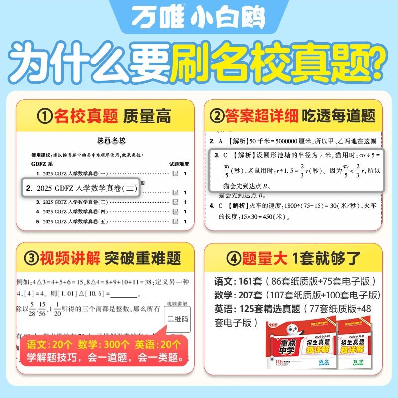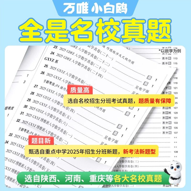 天猫2026万唯小升初真题卷小白鸥语文数学英语试卷测试卷全套2025五六年级考试真题卷总复习小白鸽小升初重点中学招生真题详解模拟试卷