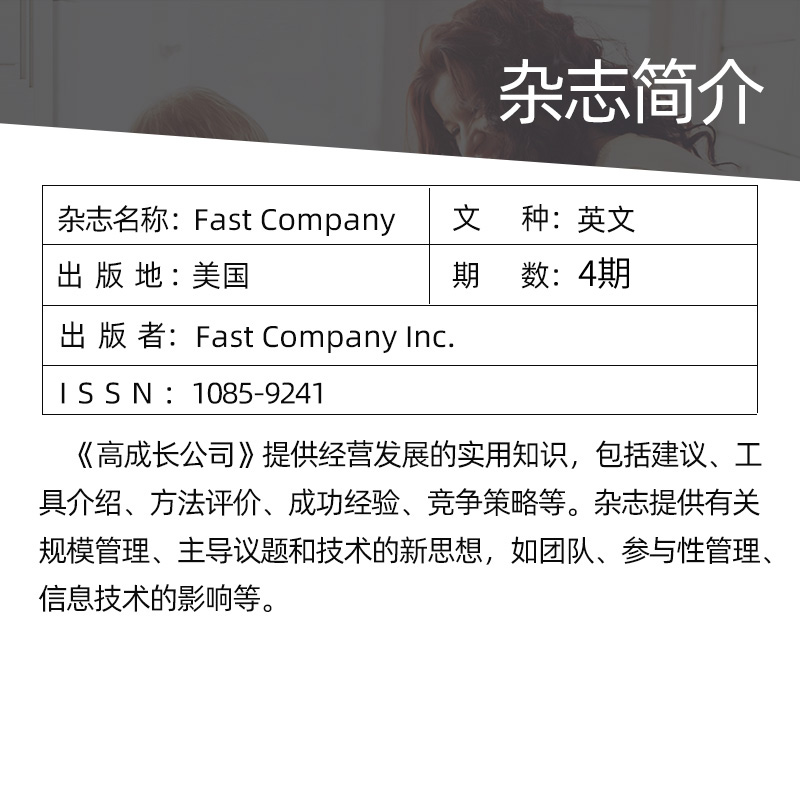 天猫【单期/订阅】Fast Company 2025全年4期订阅 高成长公司快速公司 2023/22/21/20/19年月刊 美国商业财经杂志原版期刊
