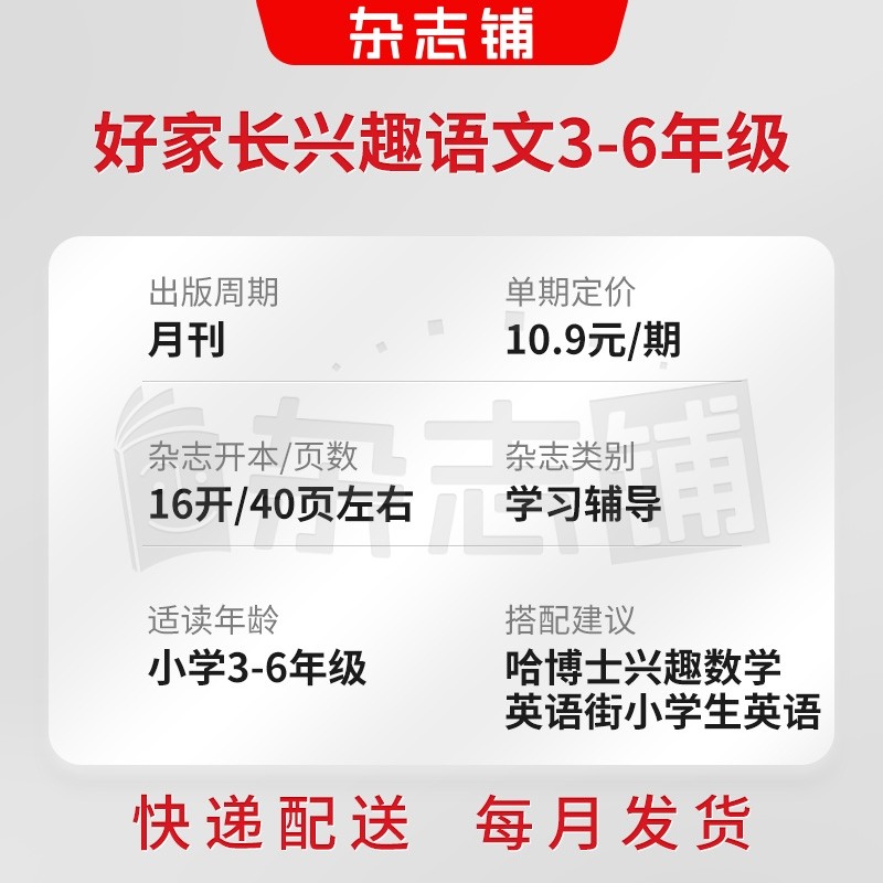 天猫【包邮】原好家长兴趣语文3-6年级杂志 全年订阅 2026年1月起订 1年共12期 小学学习辅导书籍期刊 杂志铺 全年