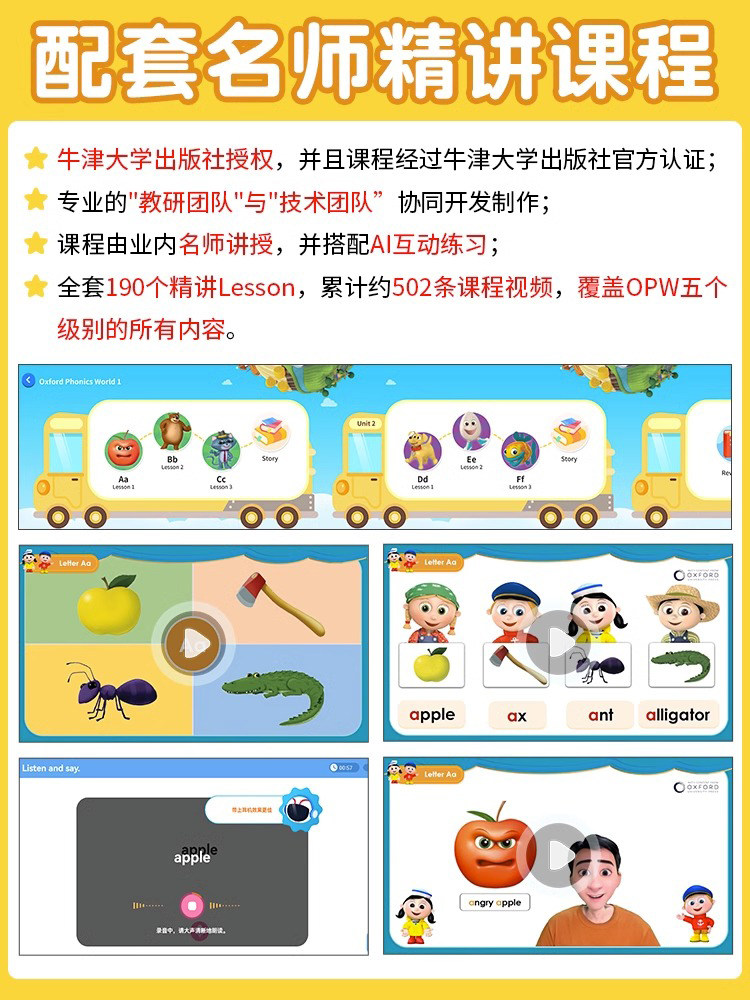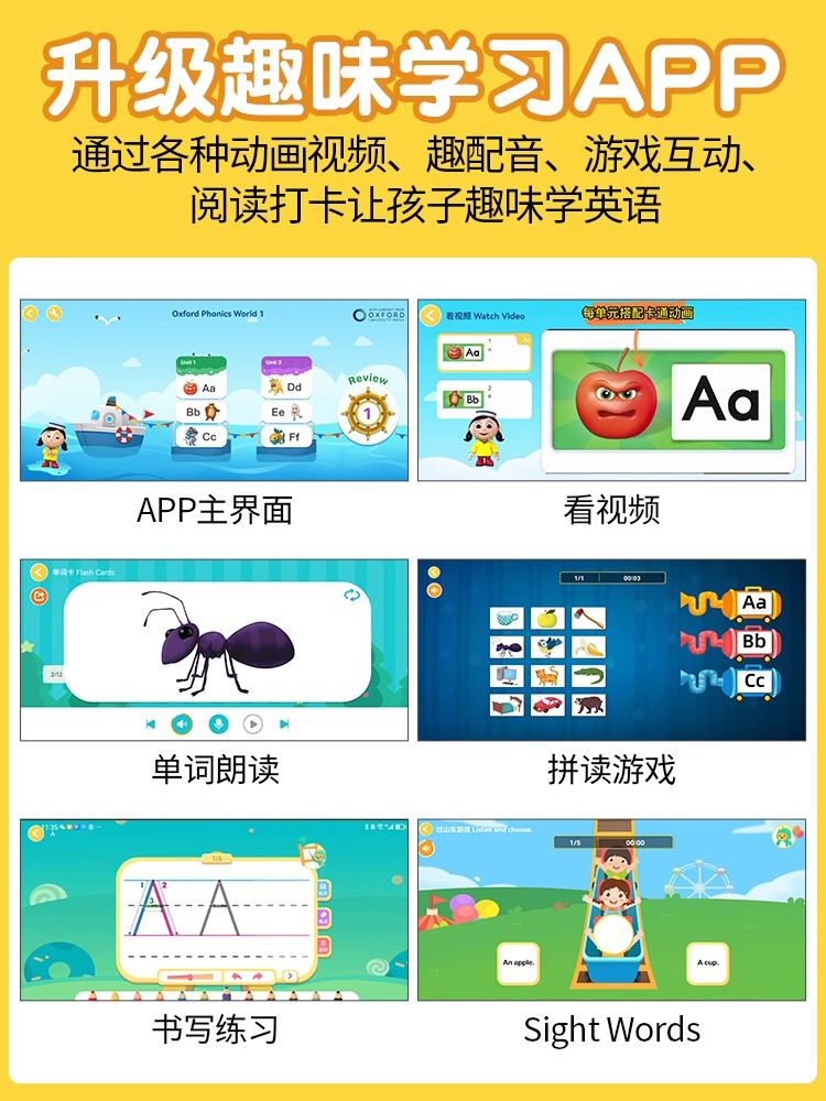 牛津自然拼读教材点读版新版《Oxford Phonics World》全套礼盒装,专为幼少儿英语启蒙设计,融合系统自然拼读法与趣味互动学习。教材涵盖字母、短元音、长元音、辅音组合等五大级别,循序渐进帮助孩子掌握拼读规律。搭配全套点读绘本,支持点读笔互动,提升听力与发音准确性。内容图文并茂,活动丰富,结合游戏、歌曲和练习,激发学习兴趣。礼盒装包含学生用书、练习册、音频资源及点读功能,适合家庭自学或课堂教学,是小学阶段英语启蒙的理想选择,助力孩子轻松迈入口语与阅读大门。