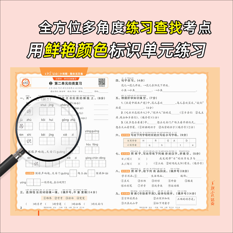 2025年《王朝霞期末活页卷》专为小学一至六年级学生设计,涵盖语文、数学、英语三科,分上下册,适配人教版、北师大版等主流教材。试卷精选典型题型,紧扣课标与期末考点,注重基础知识巩固与综合能力拓展。每册包含多套活页式期末模拟卷,便于随堂练习、阶段检测与考前冲刺。题目梯度合理,难易适中,帮助学生查漏补缺、提升应试技巧,助力期末冲刺100分。活页设计灵活便携,教师可拆分使用,学生可反复练习,是高效提分的优质复习资料。